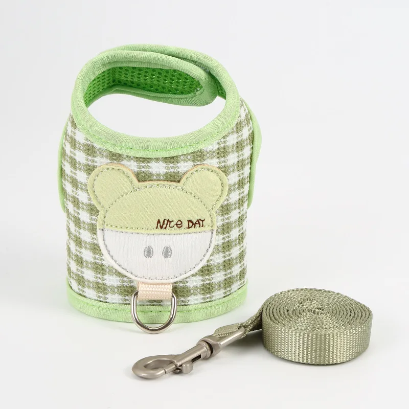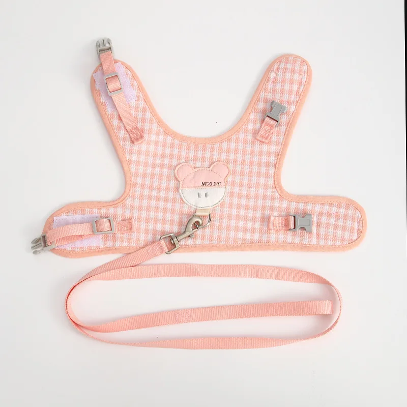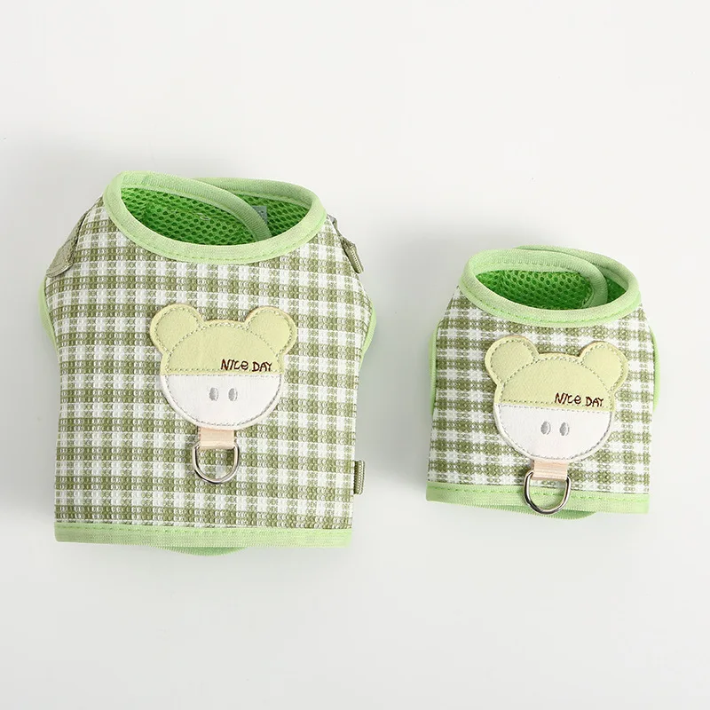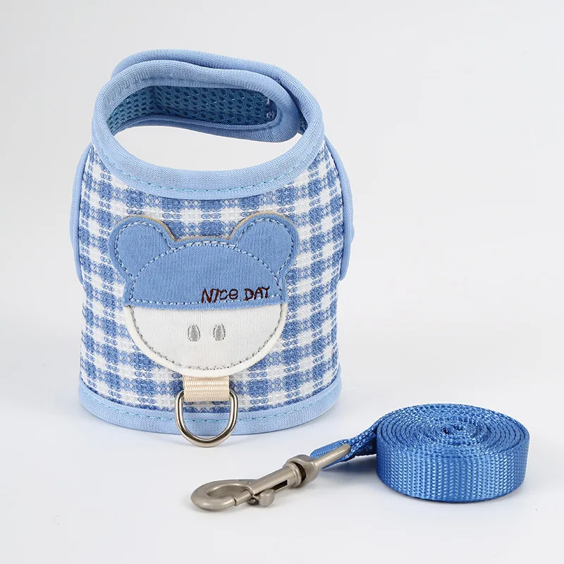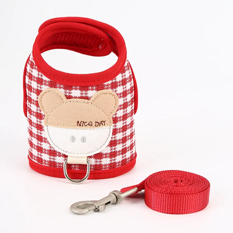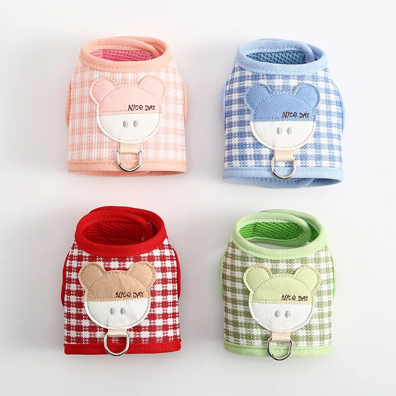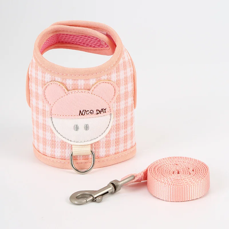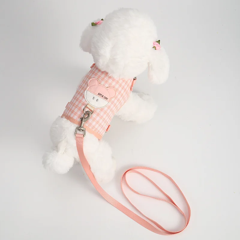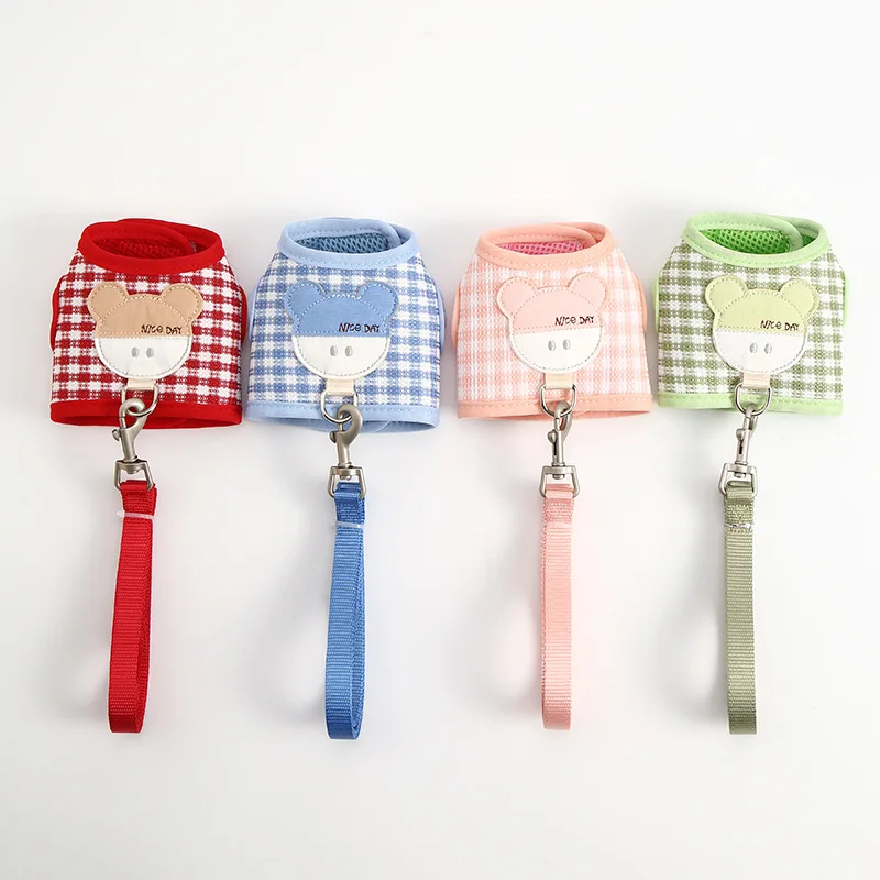 Conjunto de arnés y correa para perros pequeños, chaleco de oso dulce para mascotas y gatos, con correa acolchada de malla para cachorros, Chihuahua y Yorkie