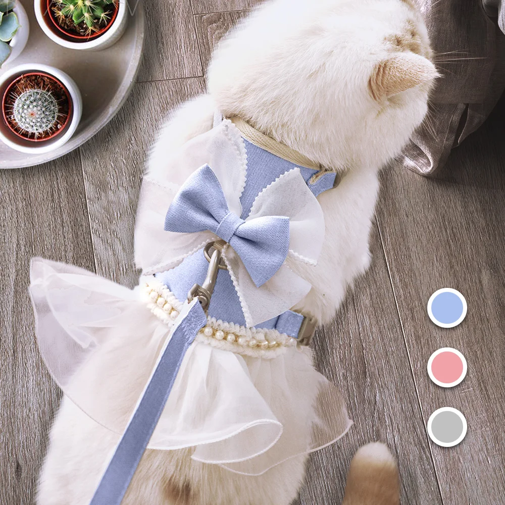 Tipo: arnés y correa de princesa para perros y gatos, arnés de encaje con lazo para mascotas, vestido con correa para el pecho para accesorios de moda para gatos Chihuahua