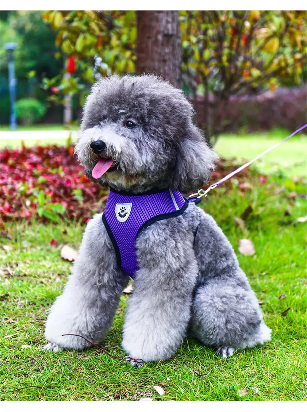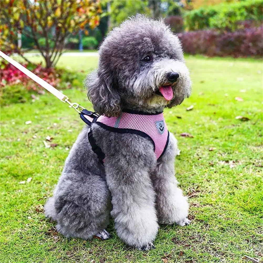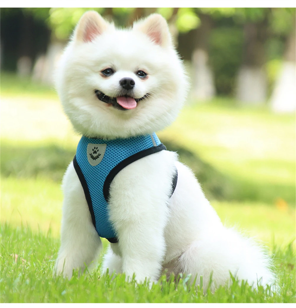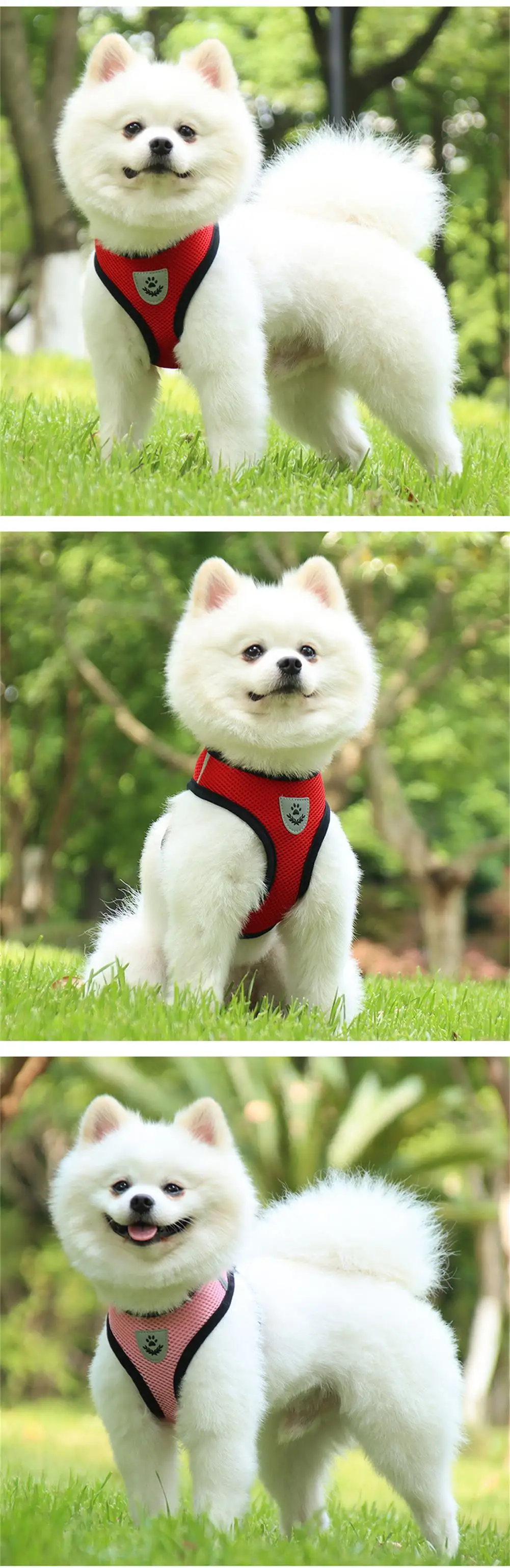 1. Textura suave, cómoda y transpirable sin bordes duros ni hebillas para irritar la piel, reducir tirones y tirar del cuello de su mascota y hacer que su mascota camine cómodamente.