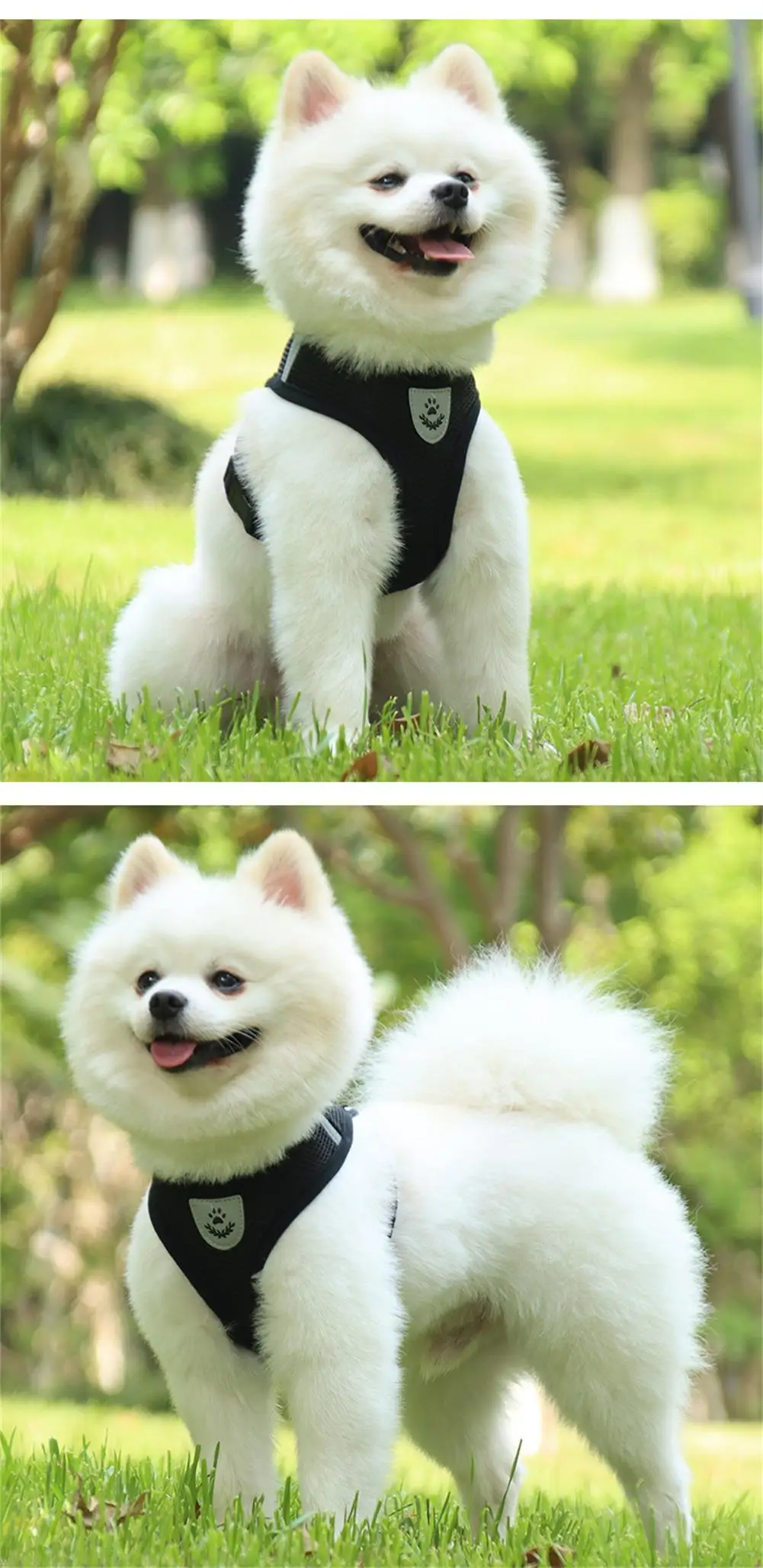 2. Arnés ajustable para perro o gato. Hay 2 hebillas ajustables en el arnés para mascotas que se pueden ajustar de acuerdo con el tamaño de los perros o gatos.