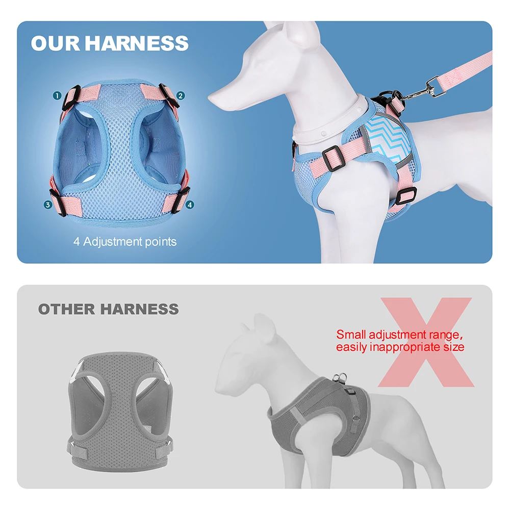 Juego de arnés y correa reflectante para perros, arnés ajustable para cachorros, chaleco para perros pequeños y medianos, accesorios para perros que caminan, correa de 150cm
