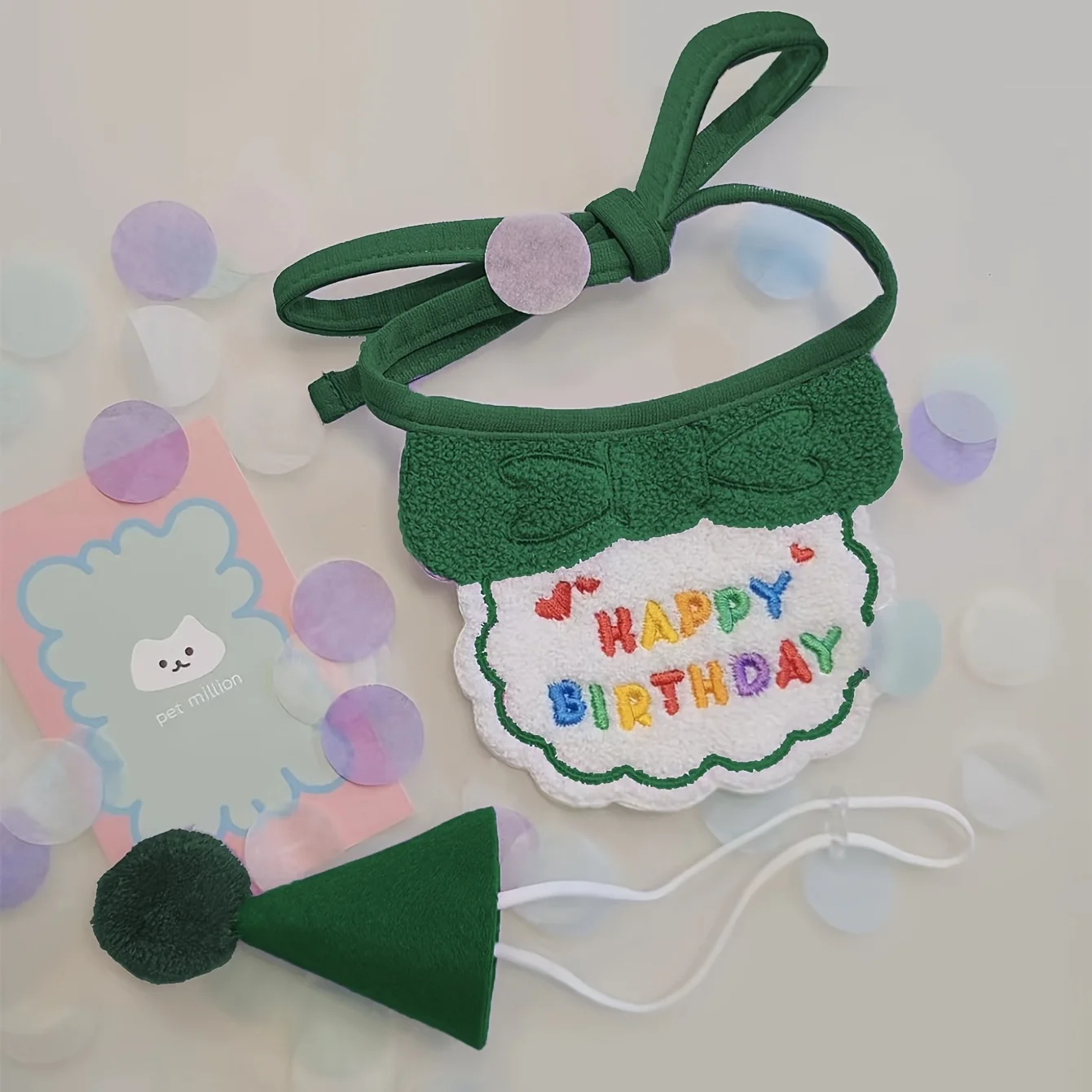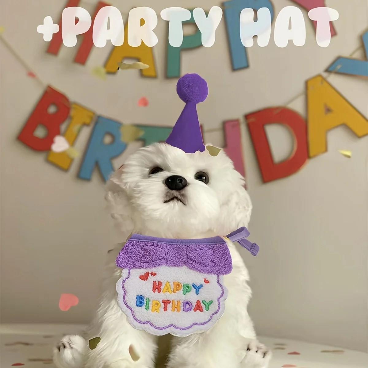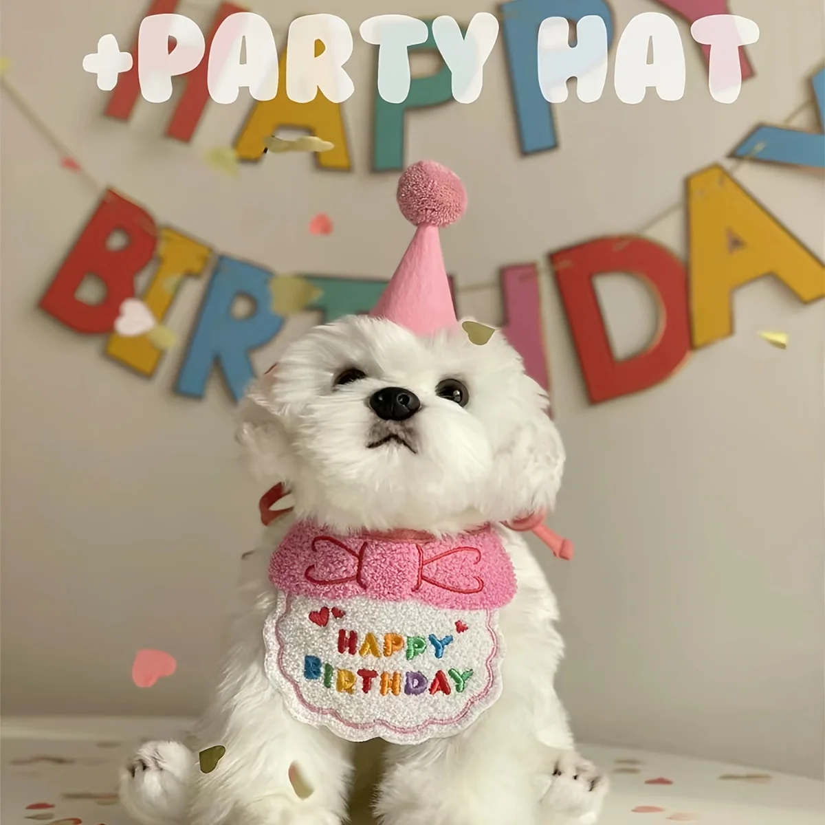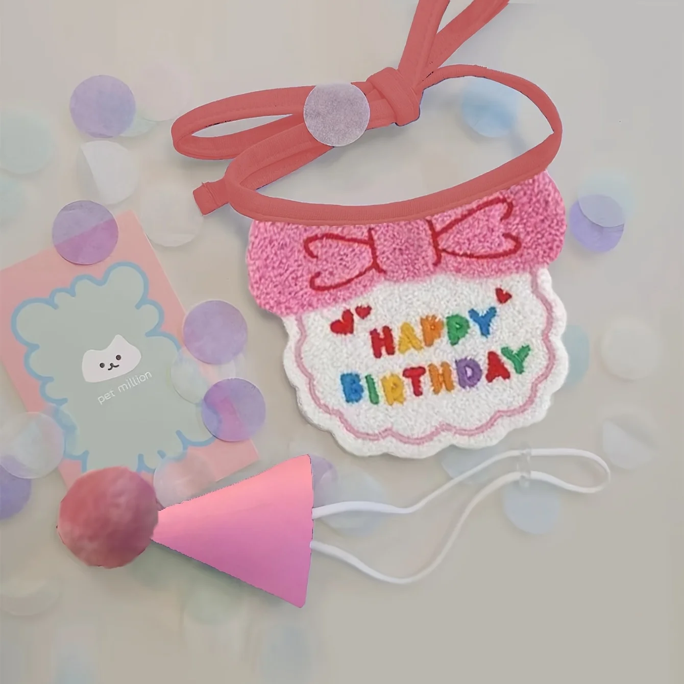 Conjunto de bufanda y sombrero de cumpleaños para perros y gatos pequeños, pañuelo bonito para cumpleaños de mascotas, suministros para fiestas, decoraciones de feliz cumpleaños para cachorros, Birt bordado