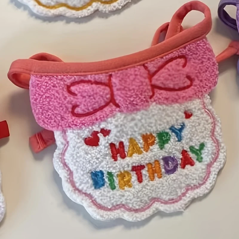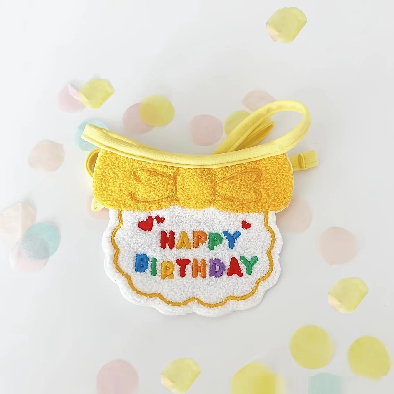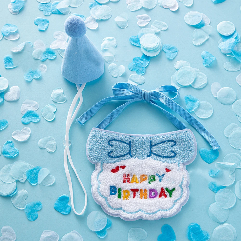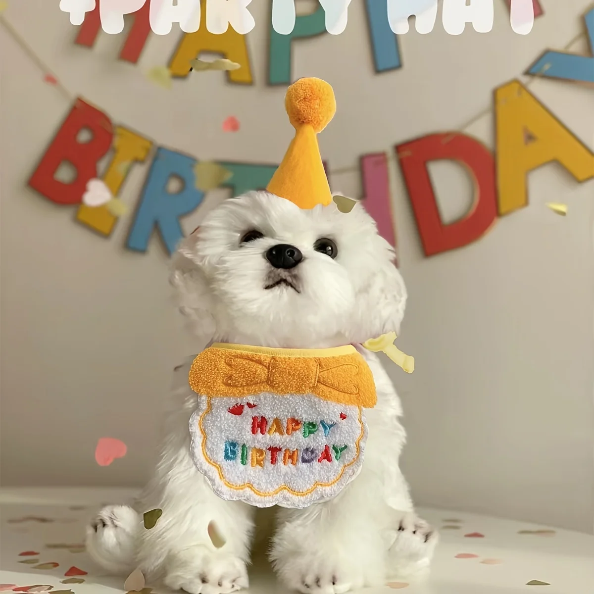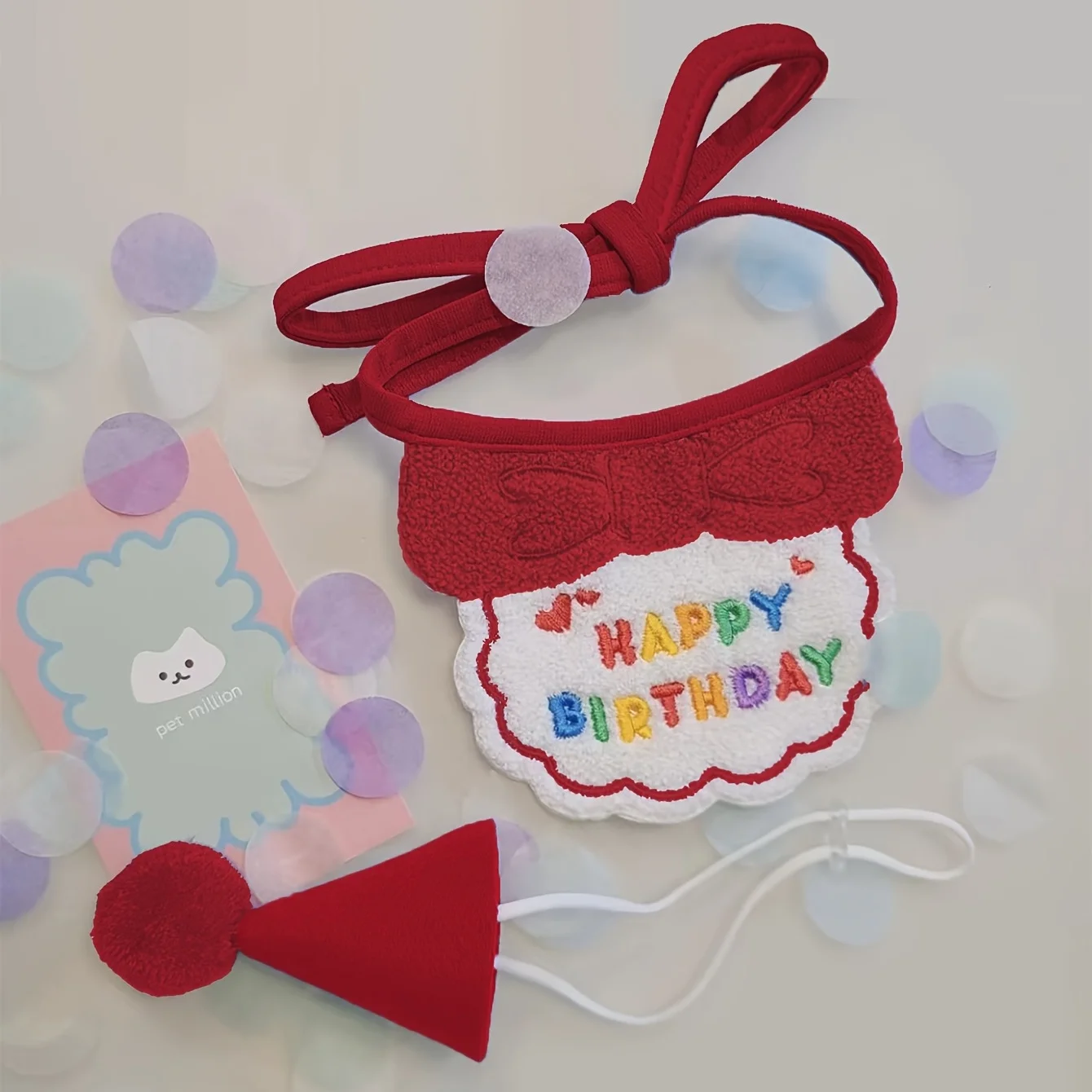Conjunto de bufanda y sombrero de cumpleaños para perros y gatos pequeños, pañuelo bonito para cumpleaños de mascotas, suministros para fiestas, decoraciones de feliz cumpleaños para cachorros, Birt bordado