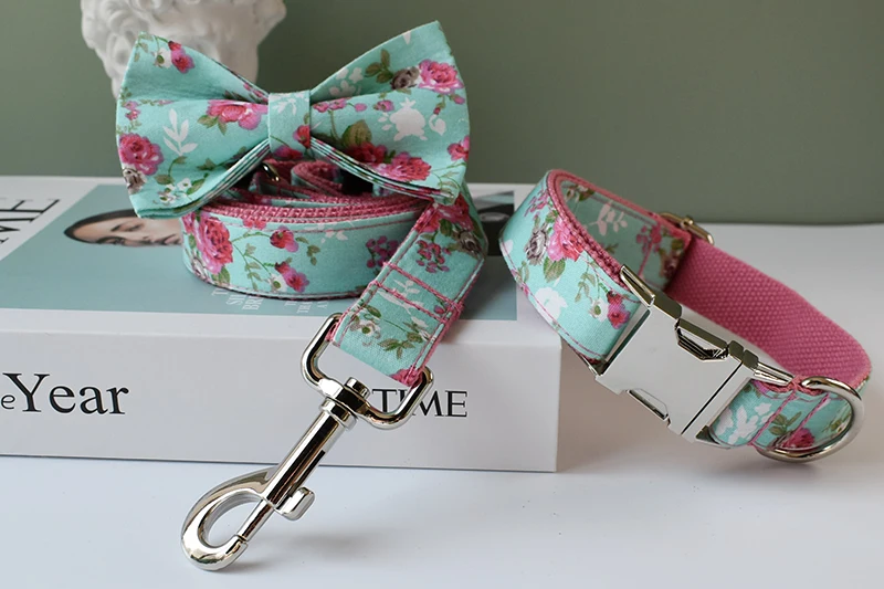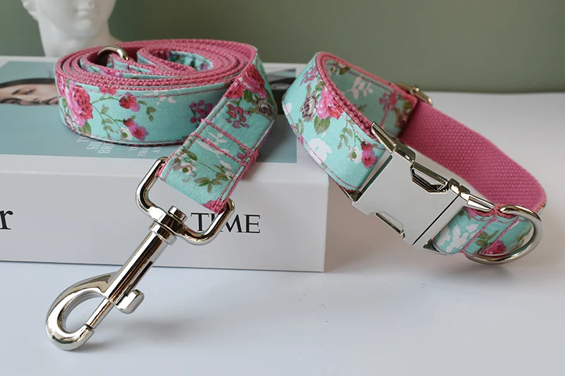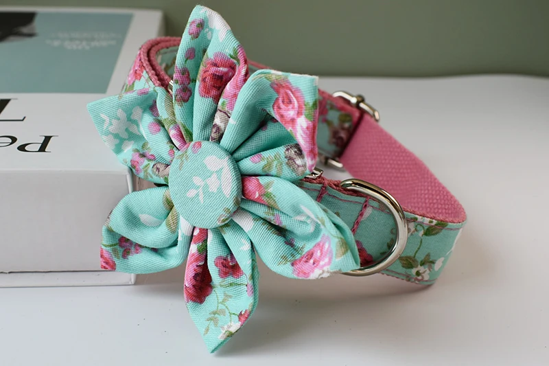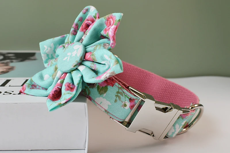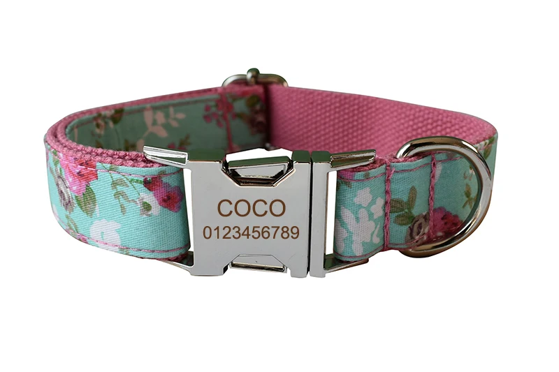 Conjunto de collar y correa para perro, collares personalizados con placa de identificación grabada, suministros para mascotas, Collar personalizado, accesorios personalizados, flores para perros y niñas, 09