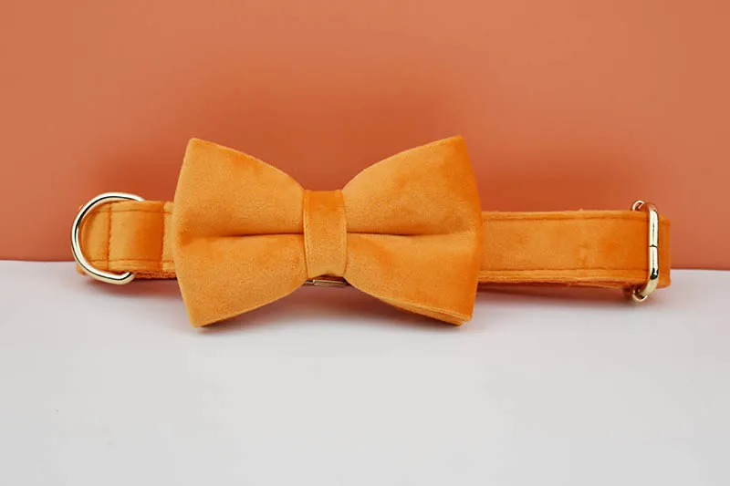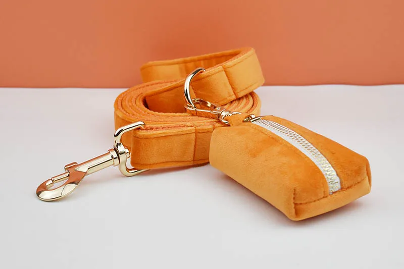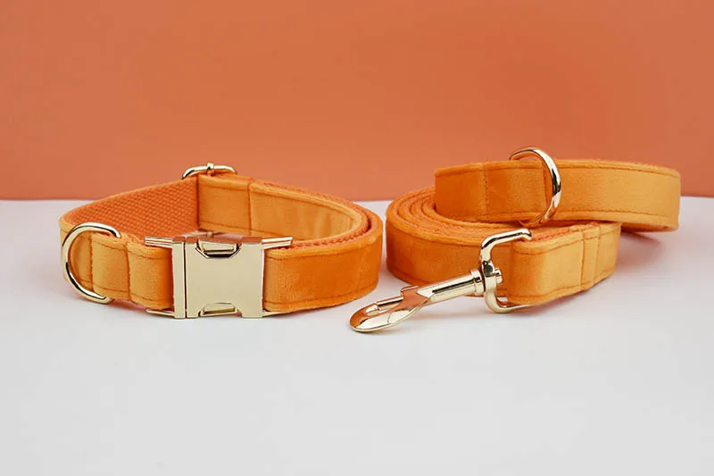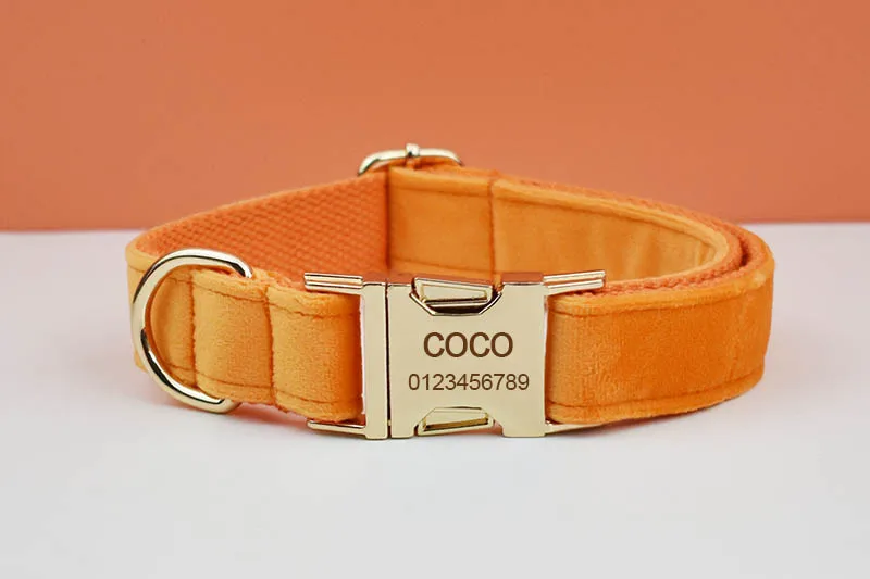 Juego de collar y correa de perro de terciopelo naranja para perros Placa de identificación grabada personalizada Suministros para mascotas Correa de perro Velvet 41