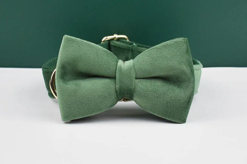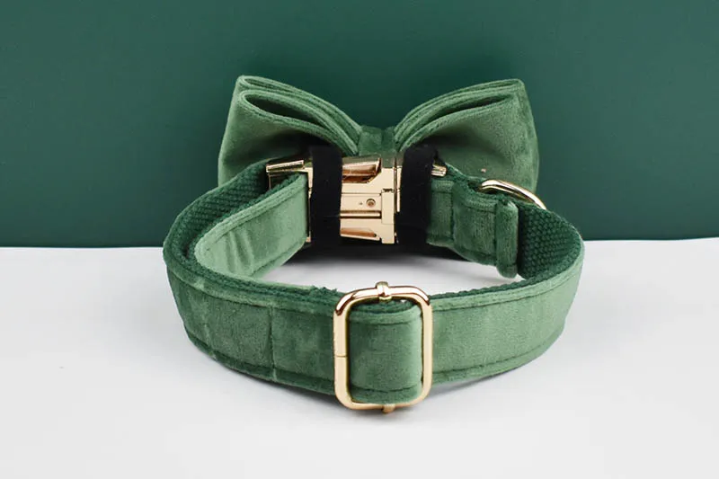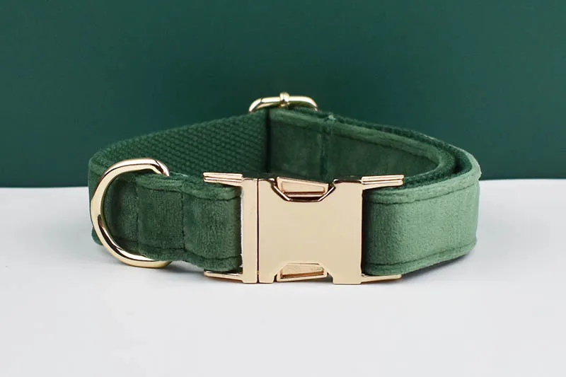 Collar y correa de perro de terciopelo verde bosque para perros placa de identificación grabada personalizada suministros para mascotas correa de perro terciopelo 39