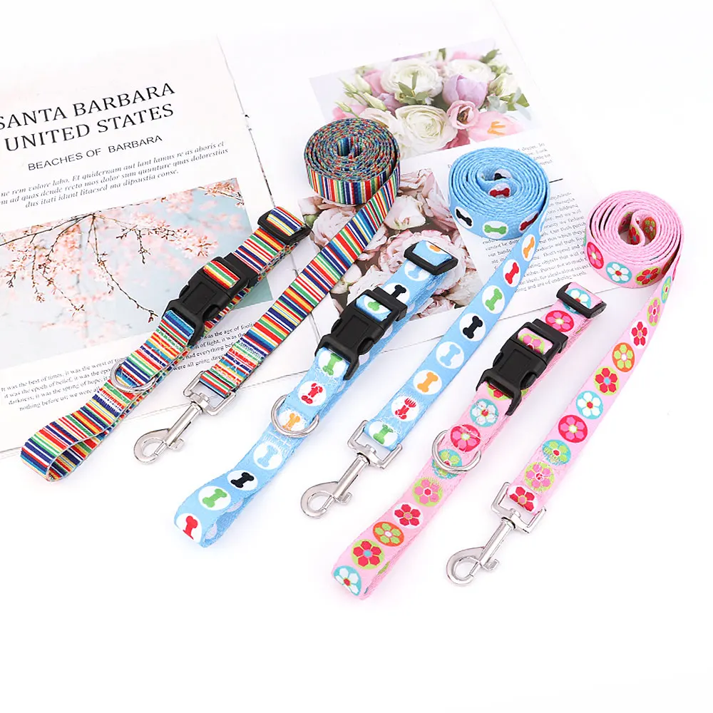 Conjunto de Collar y Correa para Perro Cachorro, Collar Ajustable con Estampado de Gatos, Correa de Plomo para Caminar, Collar de Chihuahua con Estampado de Hueso