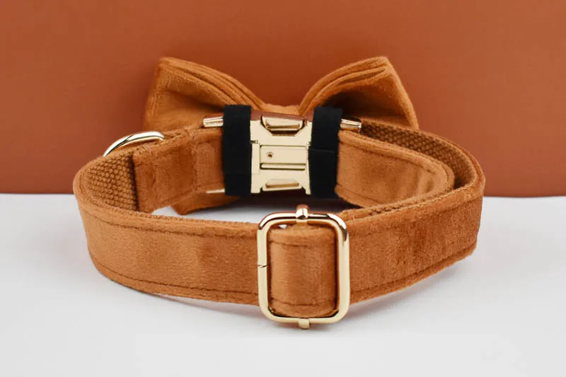 Conjunto de collar y correa de perro de terciopelo de cerámica antigua para perros placa de identificación grabada personalizada suministros para mascotas correa de perro terciopelo 21