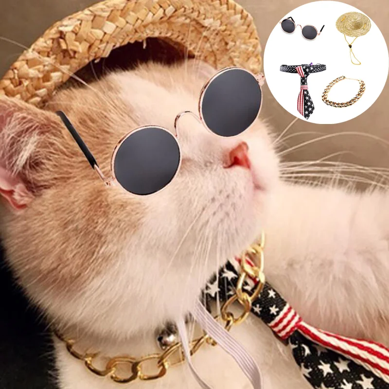 1 gafas de sol + 1 collar para mascotas + 1 sombrero para mascotas