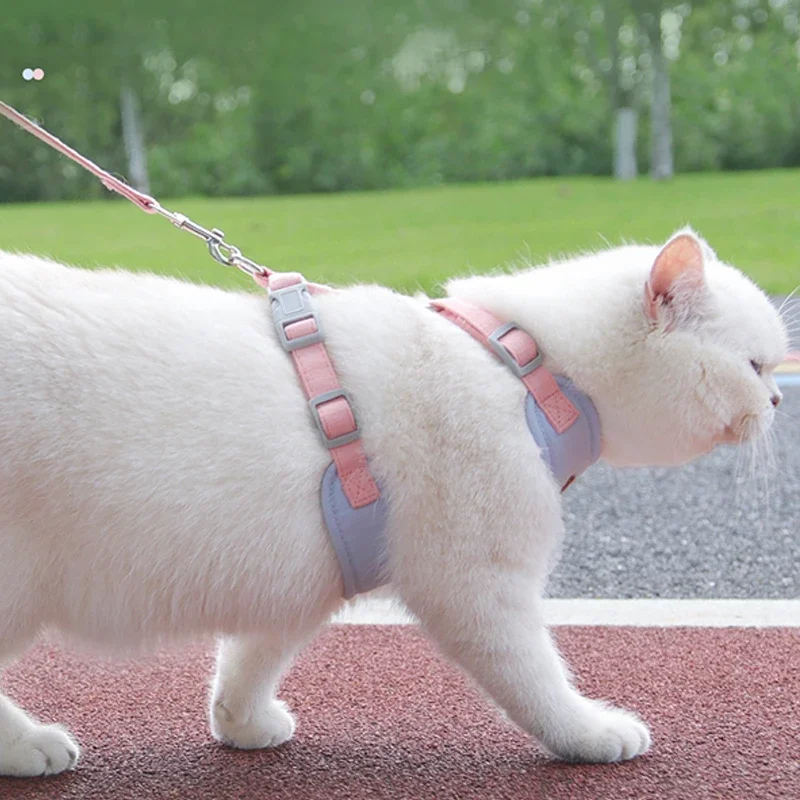 Conjunto de correa de arnés para gatos, arnés ajustable para cachorros, chaleco a prueba de fugas, correa para el pecho de gatito, correa de plomo para caminar al aire libre, Pug chihuahua