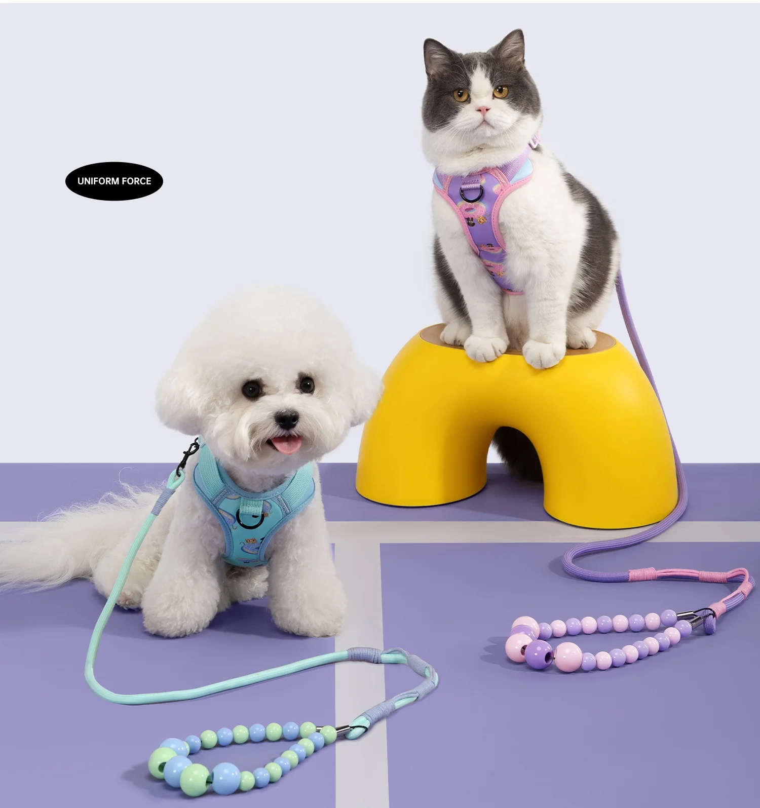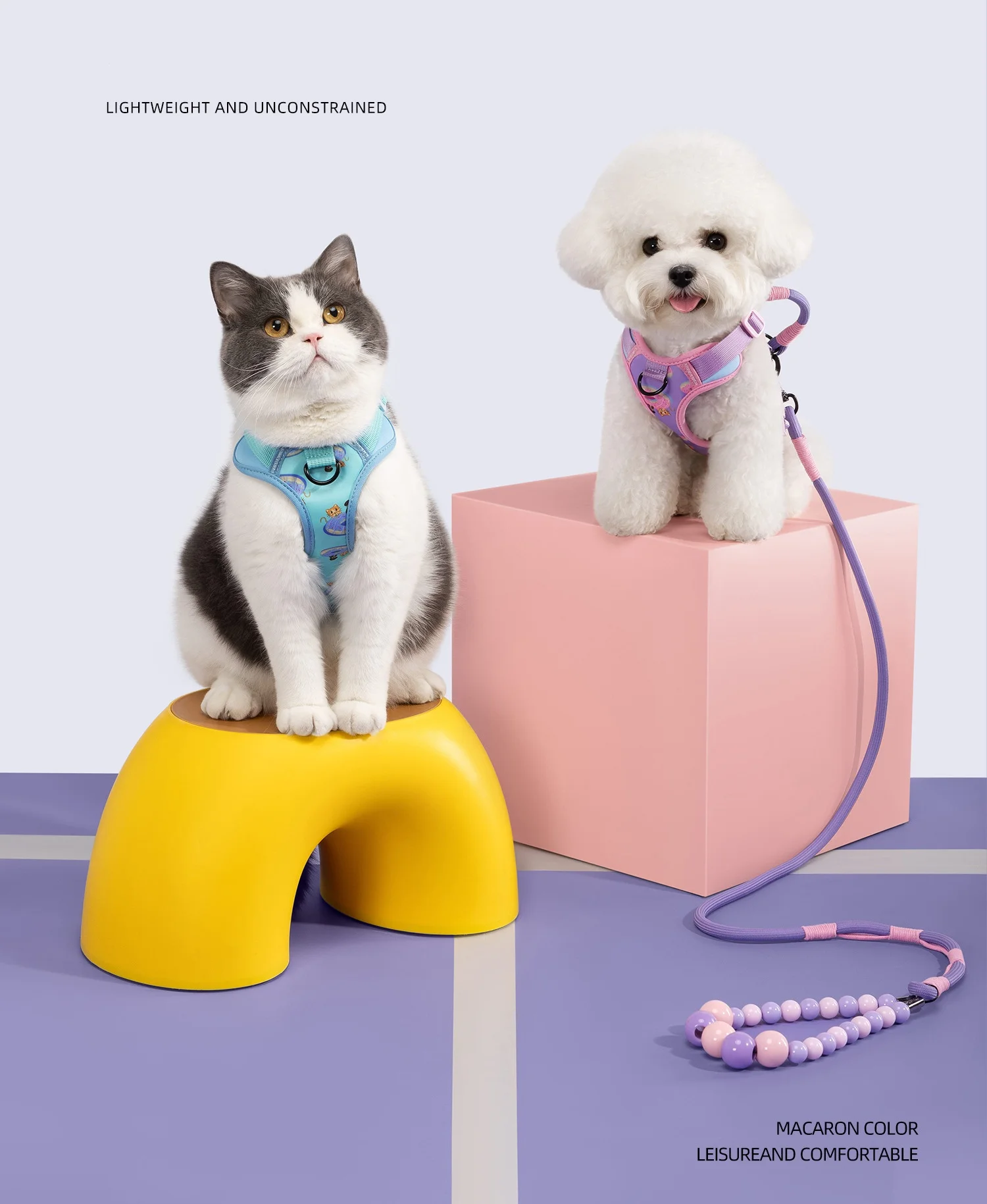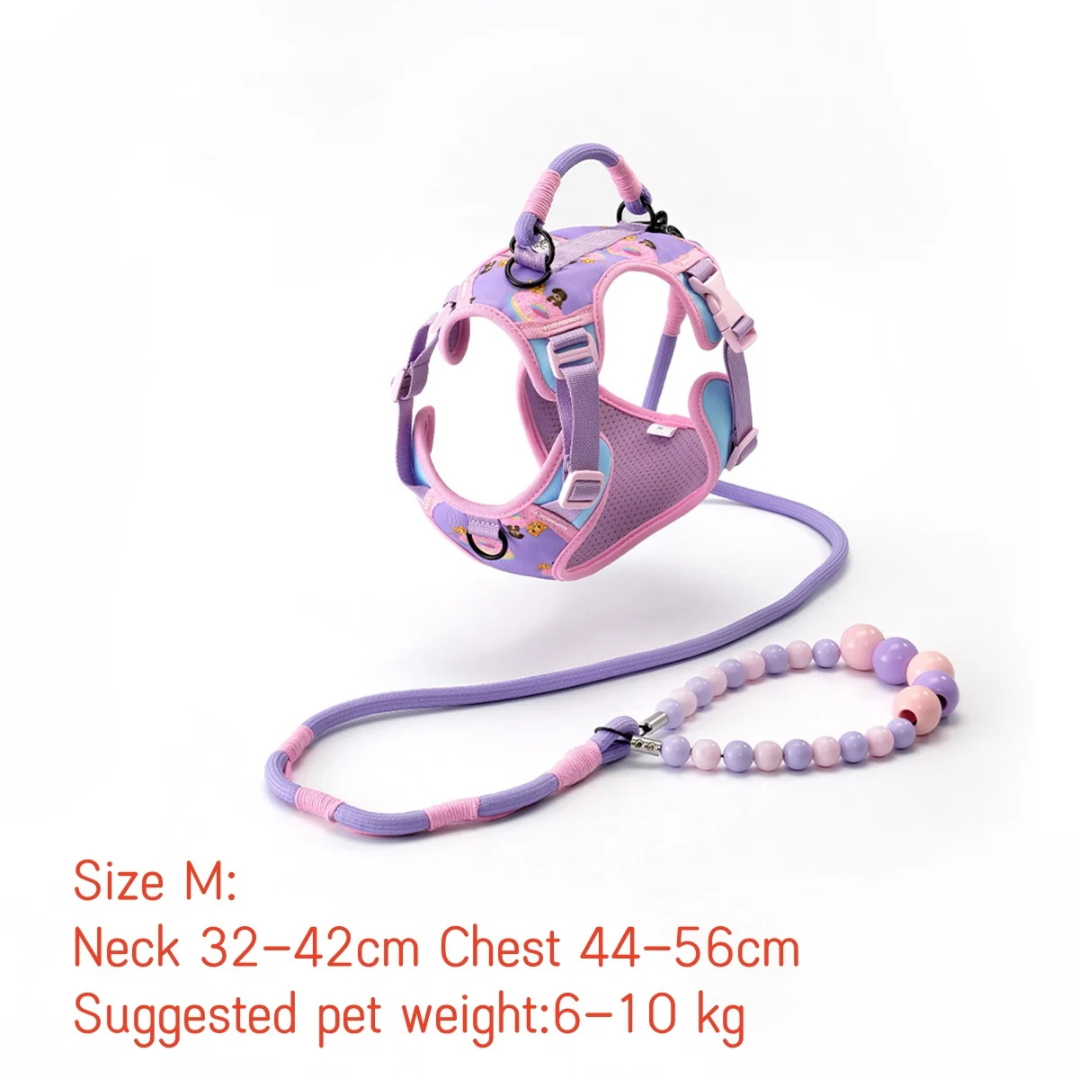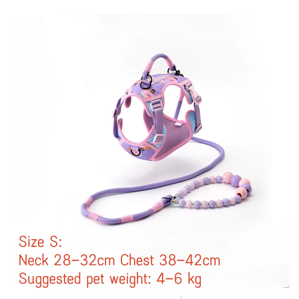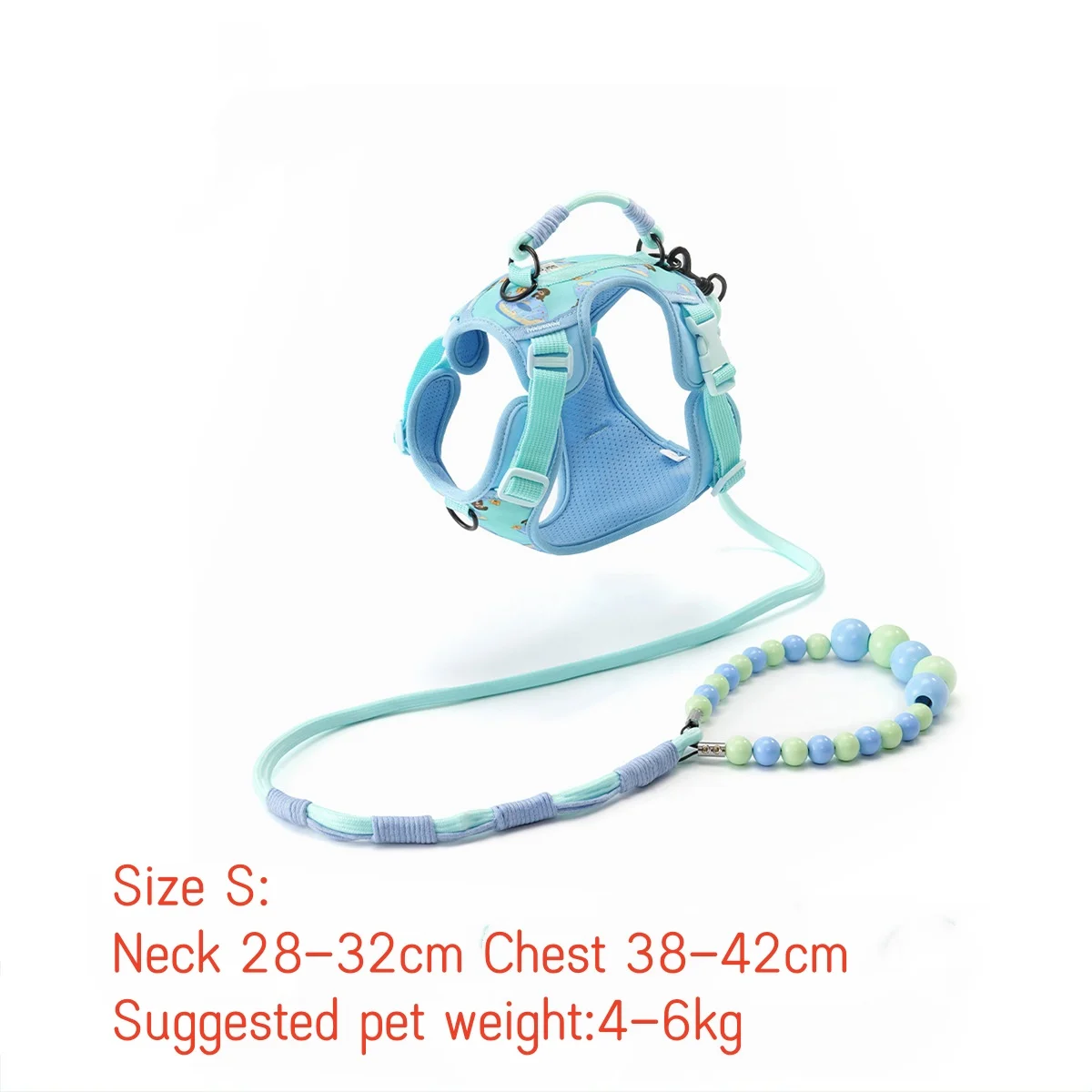 Conjunto de correa de arnés para mascotas para gatos y perros pequeños, correa de entrenamiento ajustable para perros con mango de cuentas, arnés de chaleco ligero para mascotas