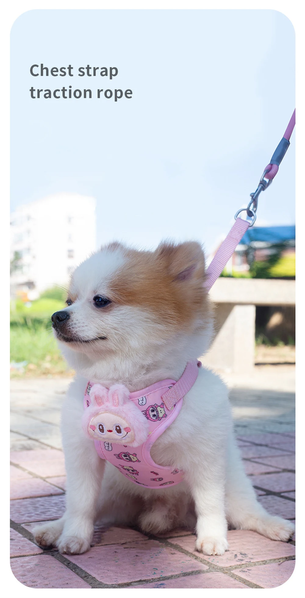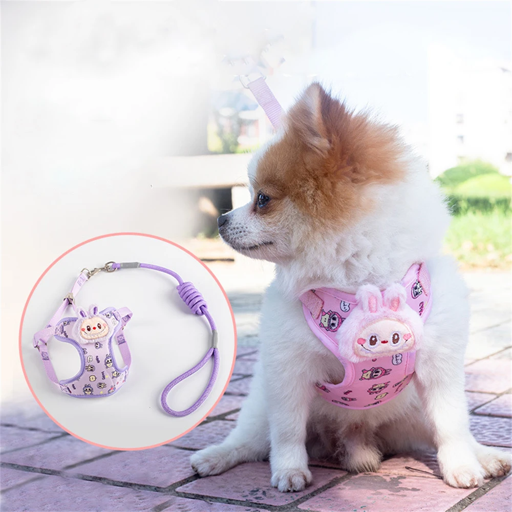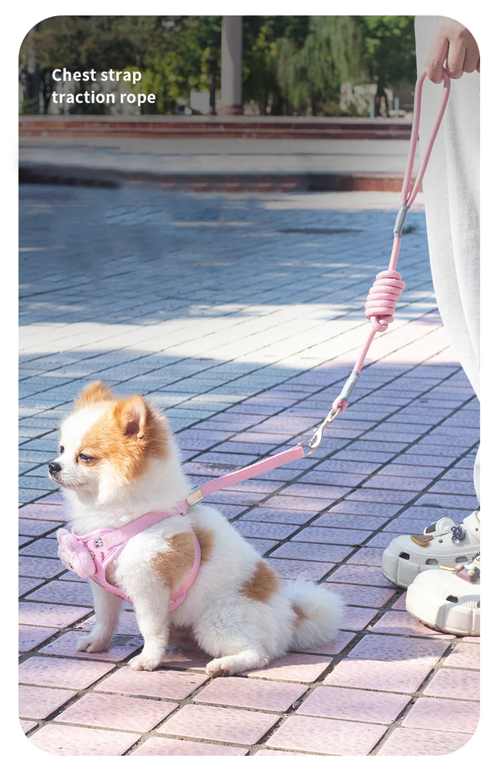 Conjunto de correa de arnés para mascotas para perros pequeños, arnés ajustable para cachorros y gatos, chaleco bonito para Chihuahua, correa para el pecho para caminar al aire libre, cuerda de tracción