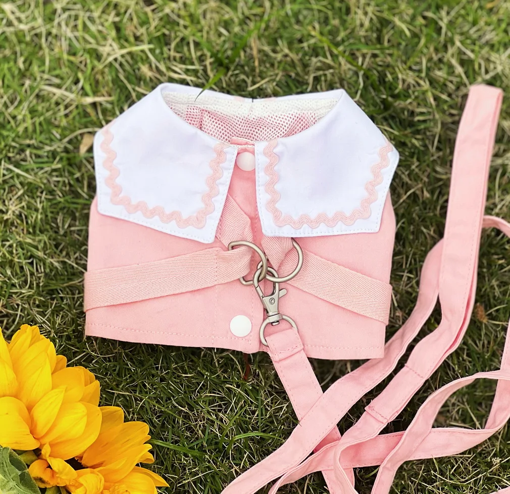 Conjunto de correa de arnés para perros y gatos, bonito collar de encaje, arnés para mascotas, chaleco para cachorros, perros, caminar, correr, correa de plomo, ropa para Chihuahua York Pug