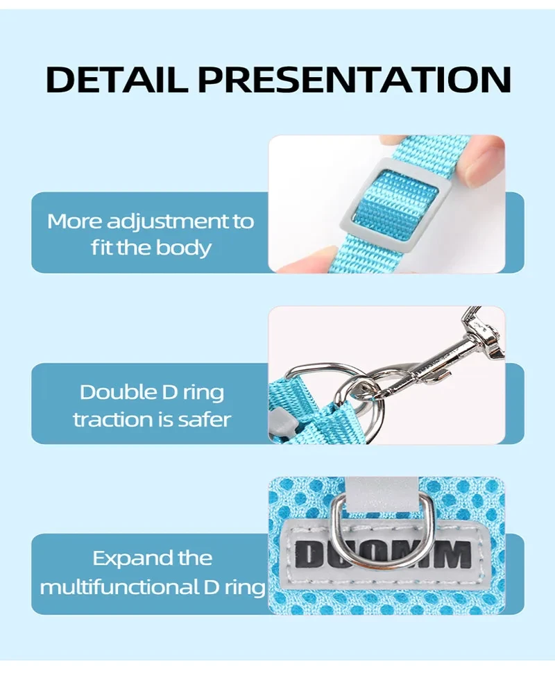 1.Arnés para perros suave y cómodo con correa: textura suave y transpirable sin bordes duros ni hebillas para irritar la piel, reduce los tirones y los tirones del cuello de su mascota y hace que su mascota camine cómodamente.
