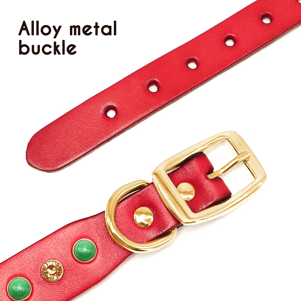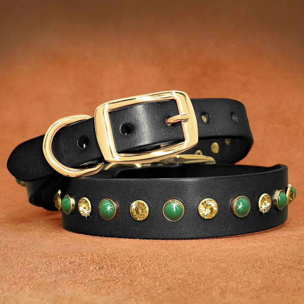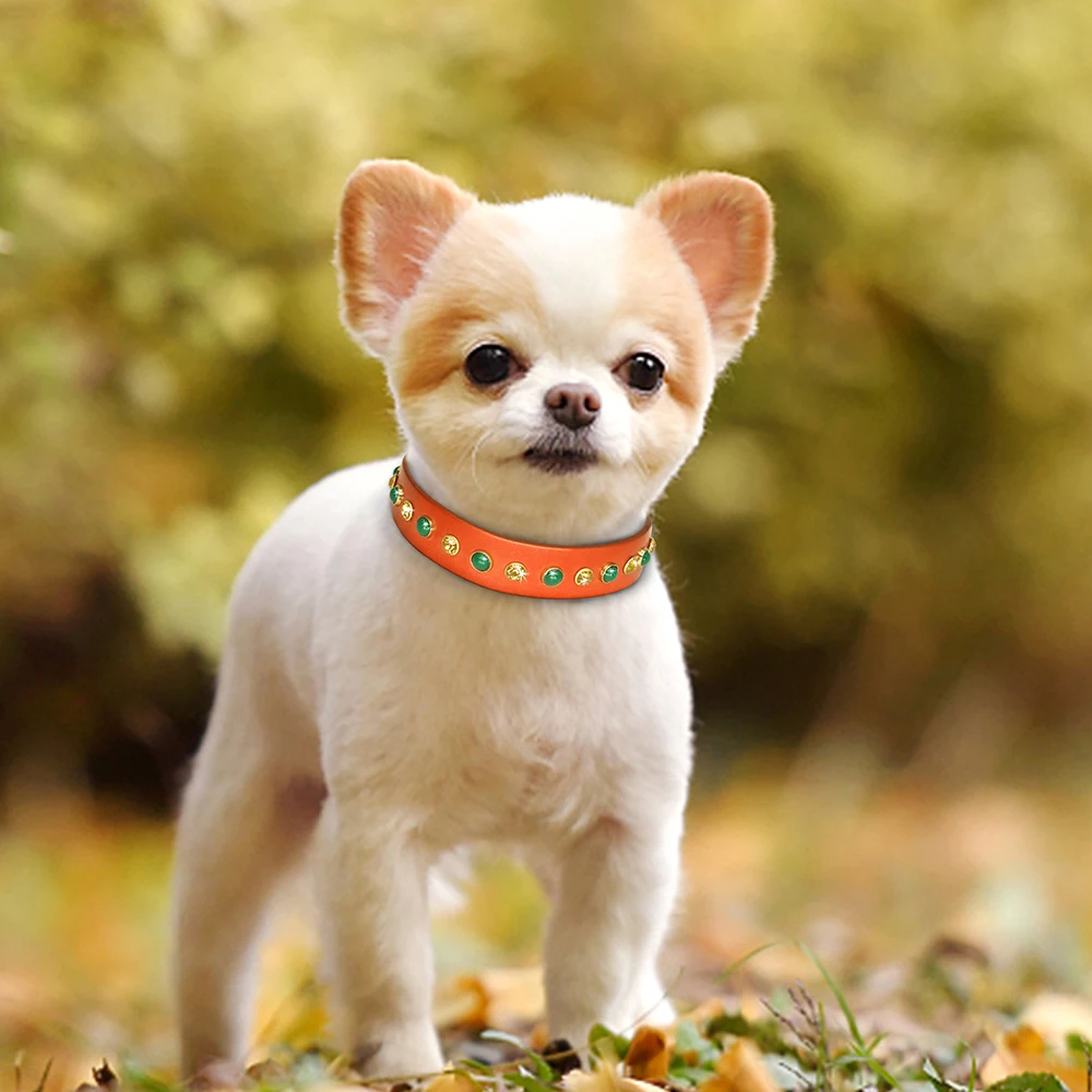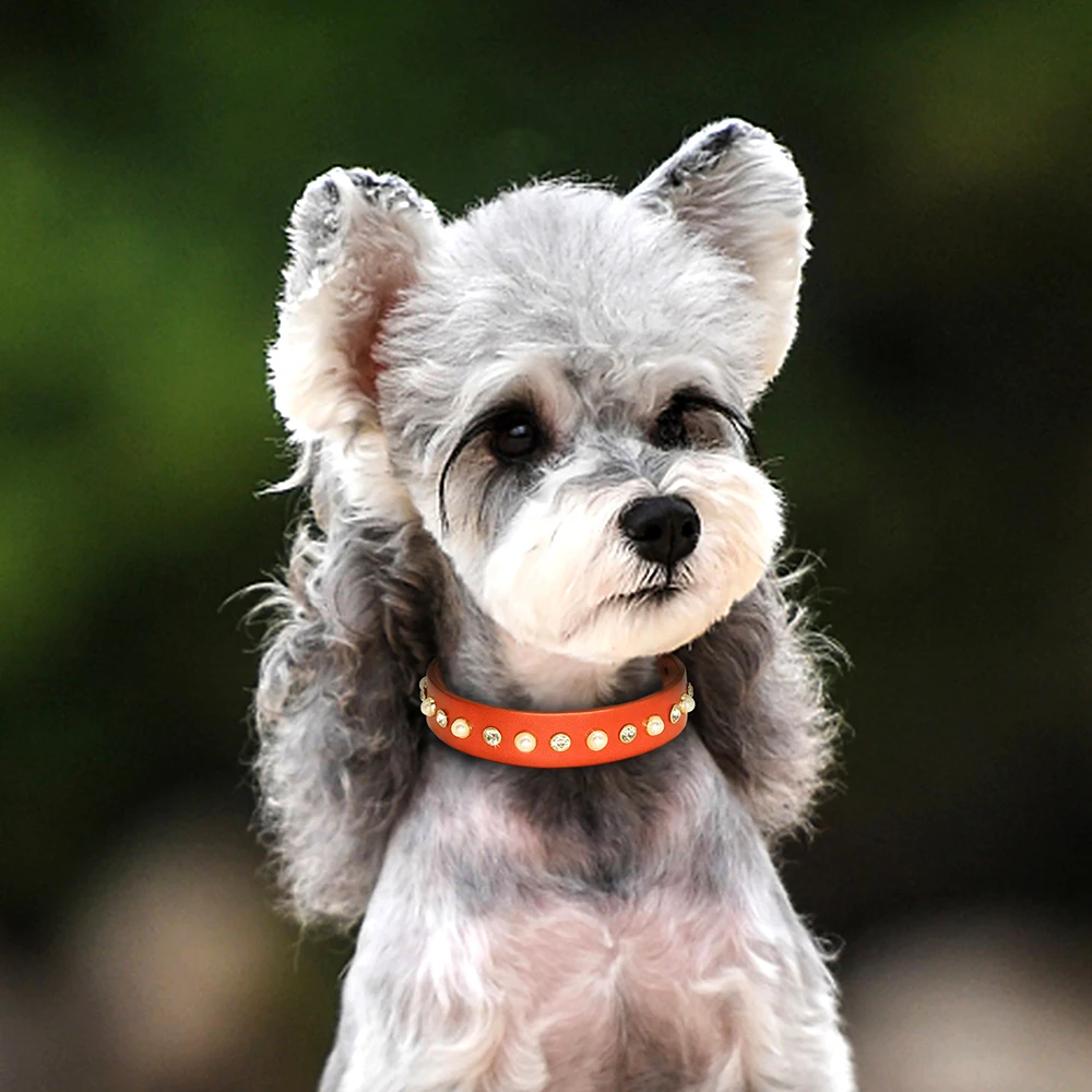 Conjunto de Collar de correa de perro de cuero genuino con diamantes de imitación para cachorros y gatos, Collar de perlas de diamante para mascotas con plomo para perros Chihuahua