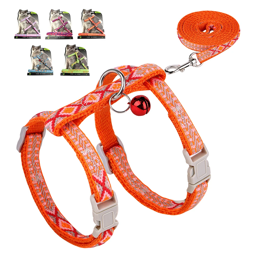 Conjunto de correa de arnés de nailon para gatos, arnés ajustable para perros pequeños y gatos, chaleco con campana, suave, cachorro, gatito, plomo para caminar para mascotas para Chihuahua