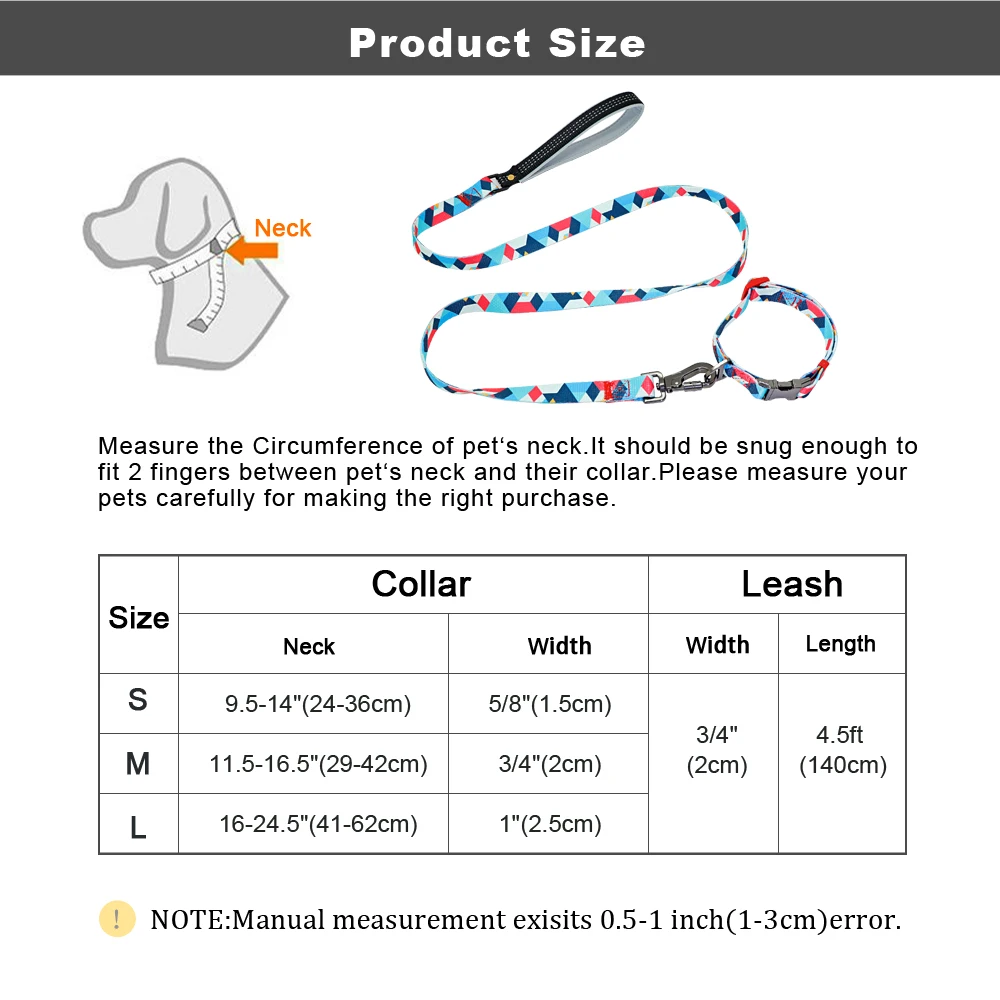 Producto de alta calidad, pero en el conjunto con un collar pequeño en talla S viene una correa muy ancha con un mosquetón enorme, por esto le quito una estrella. Ya tenía una correa así con un collar en la talla correcta.
