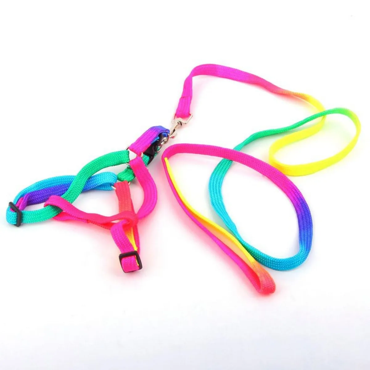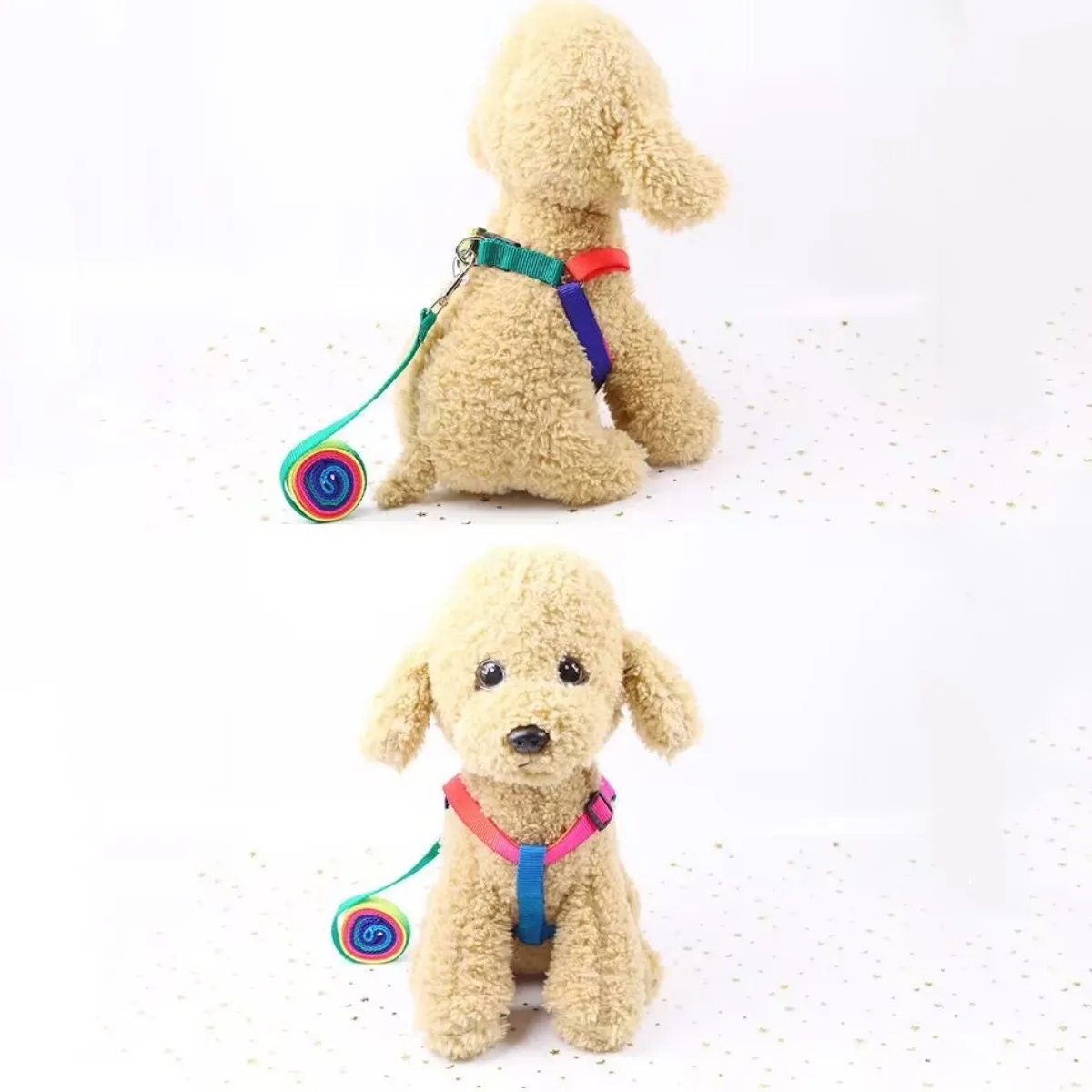 Bonito arnés para cachorros, colorido color arcoíris, 1,0X110cm, arnés suave para mascotas para caminar para perros pequeños, productos para mascotas, arnés para perros pequeños