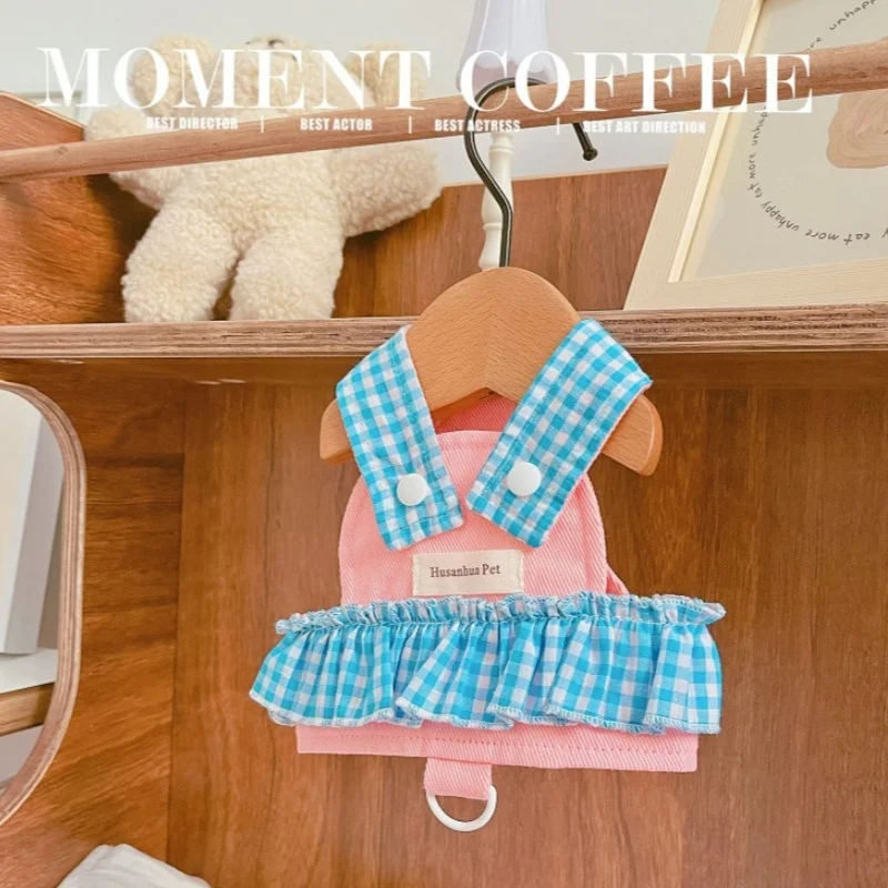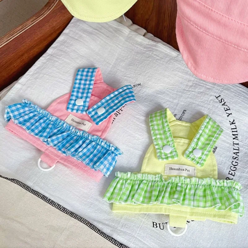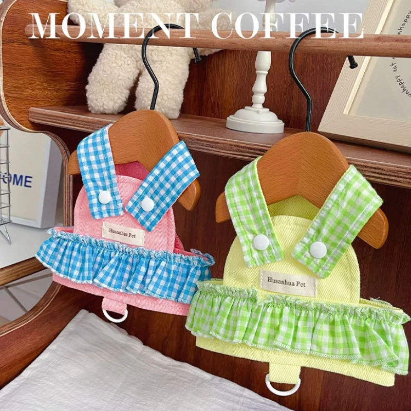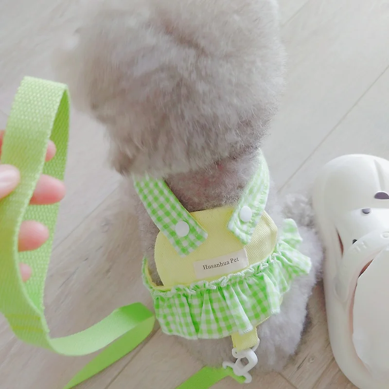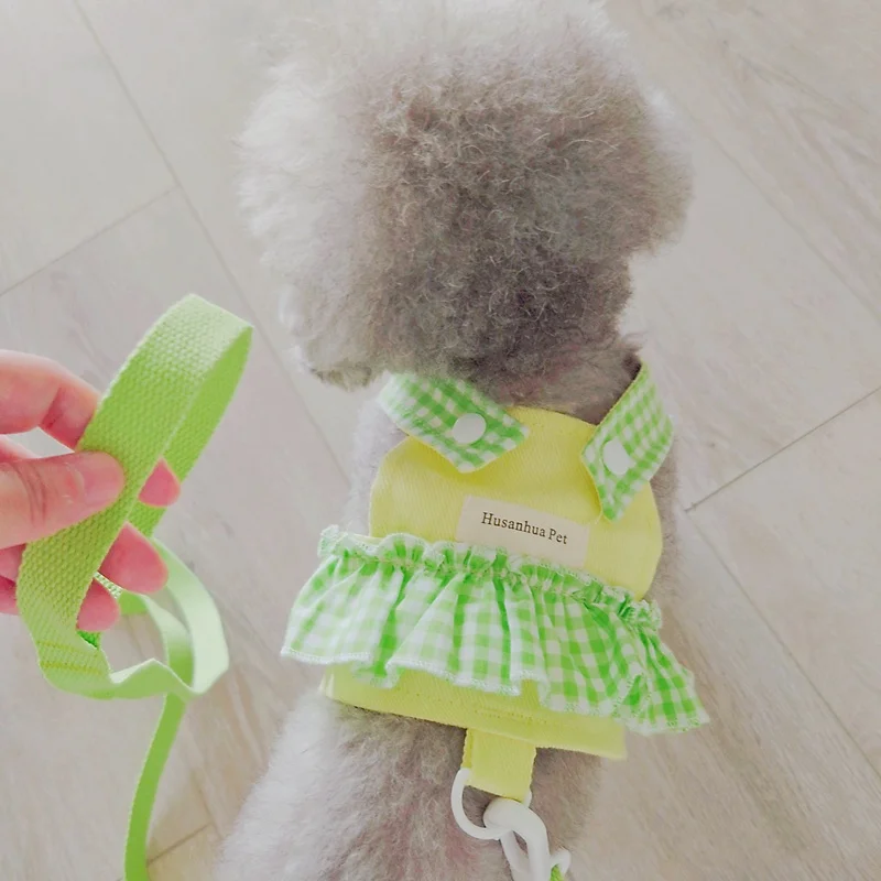Lindo conjunto de correa de arnés para perro a cuadros con sombrero, ropa de moda para perros, vestidos con tirantes para cachorros, vestido con arnés para gatos, suministros para mascotas Chihuahua