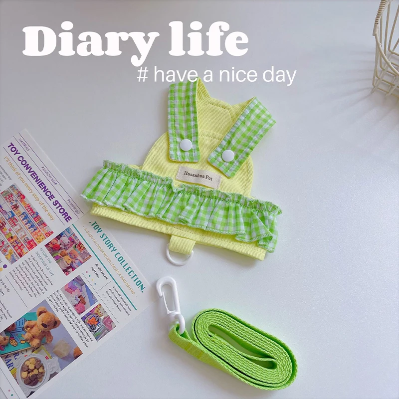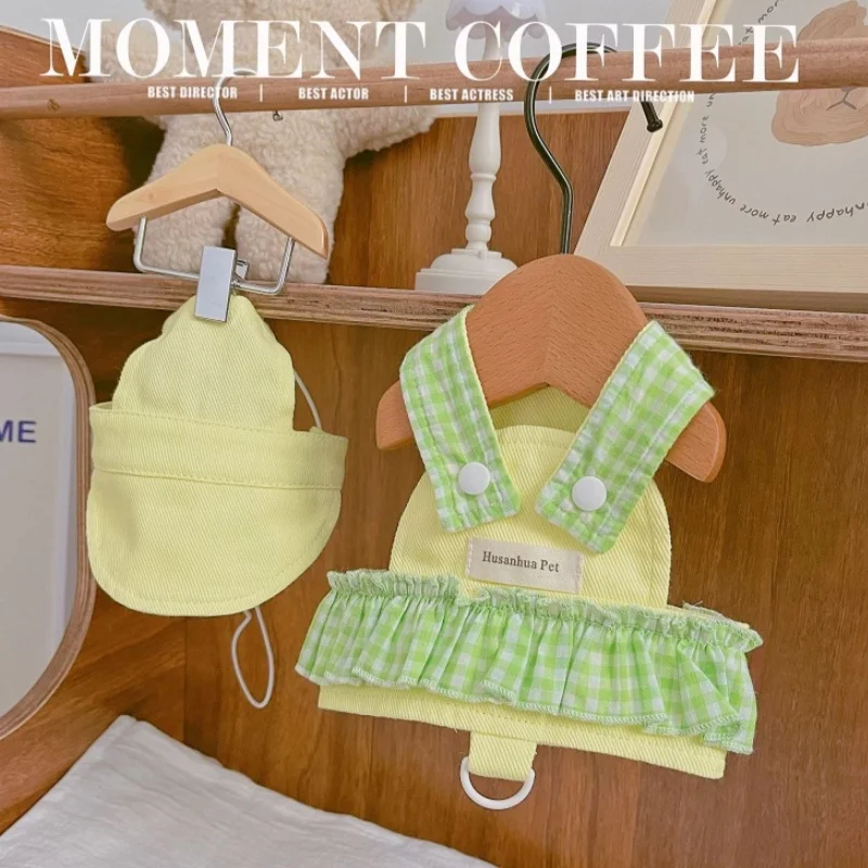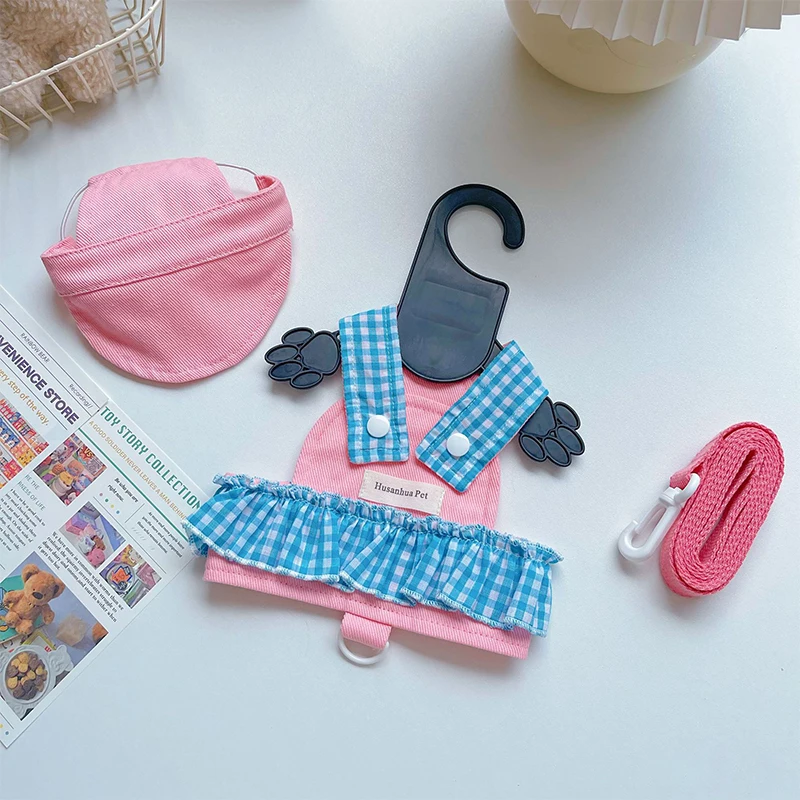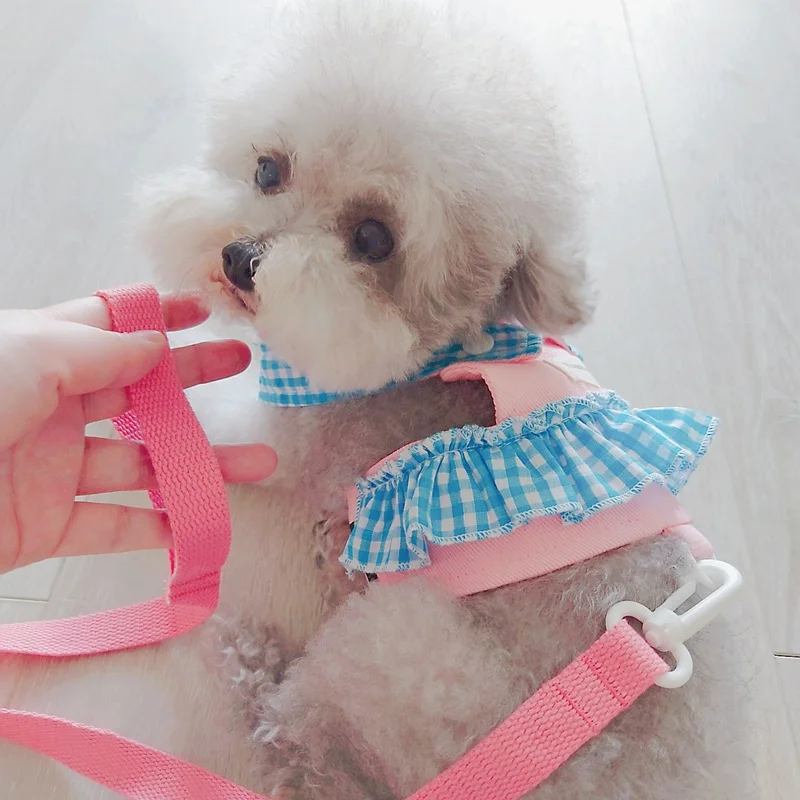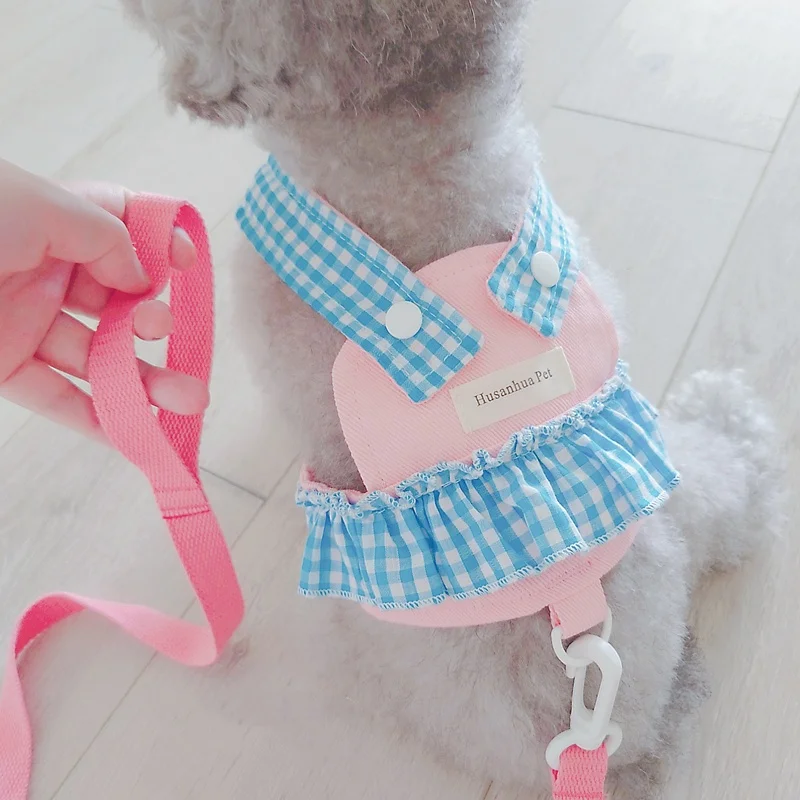 Lindo conjunto de correa de arnés para perro a cuadros con sombrero, ropa de moda para perros, vestidos con tirantes para cachorros, vestido con arnés para gatos, suministros para mascotas Chihuahua
