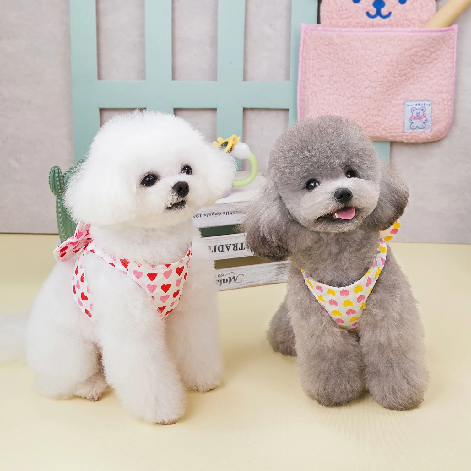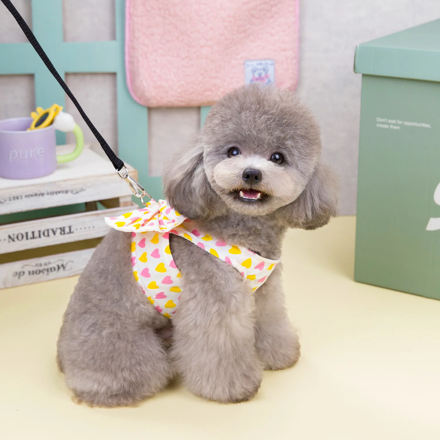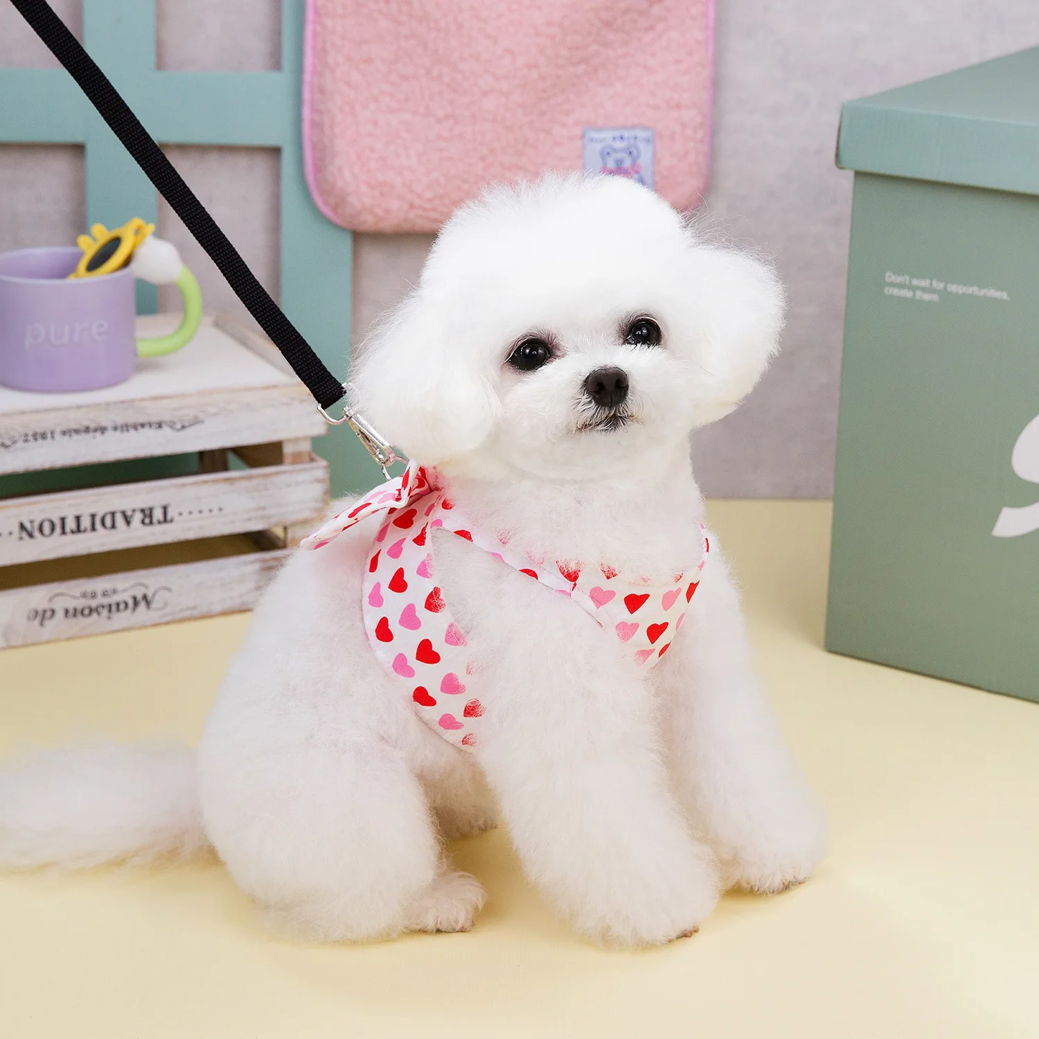 Conjunto de cuerda de tracción con lazo de amor para mascotas, ropa de primavera para perros, ropa para gatos Schnauzer de peluche, Collar para perros con pecho y espalda