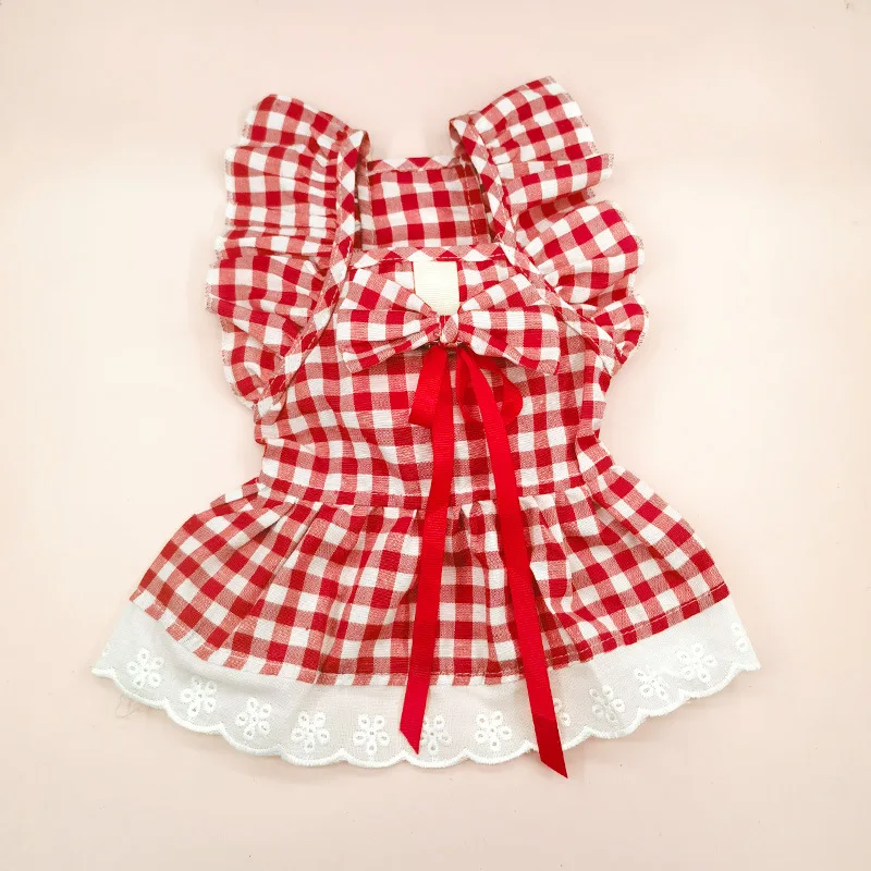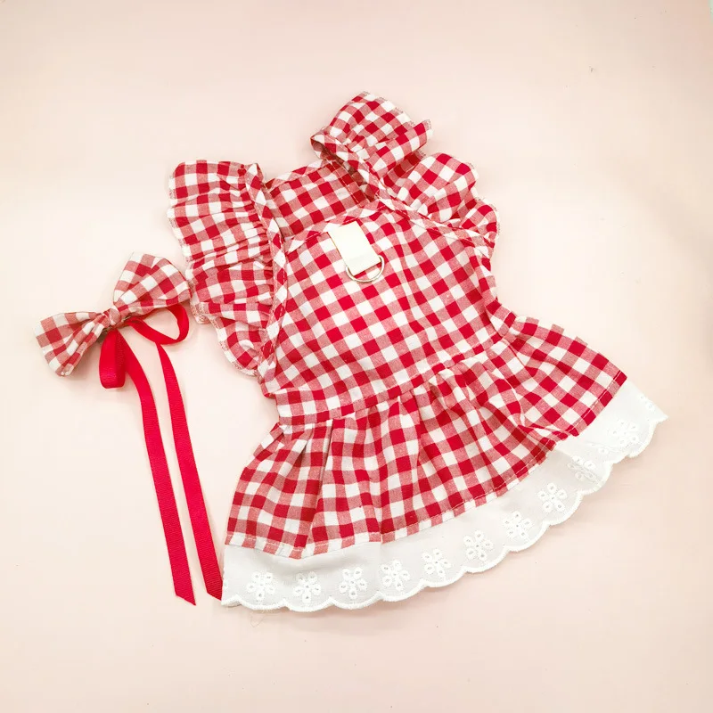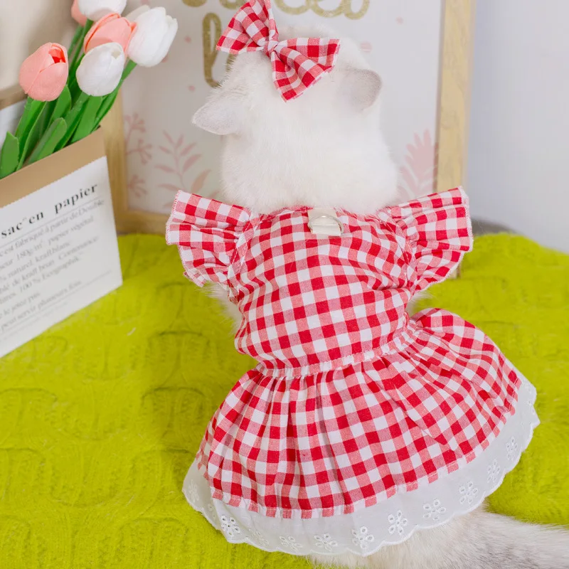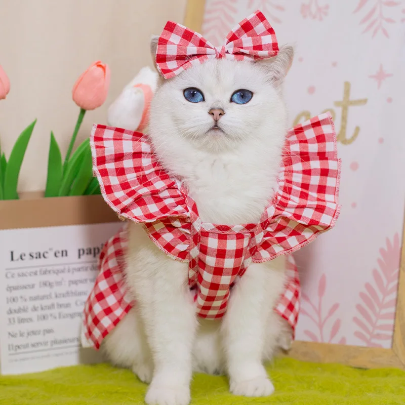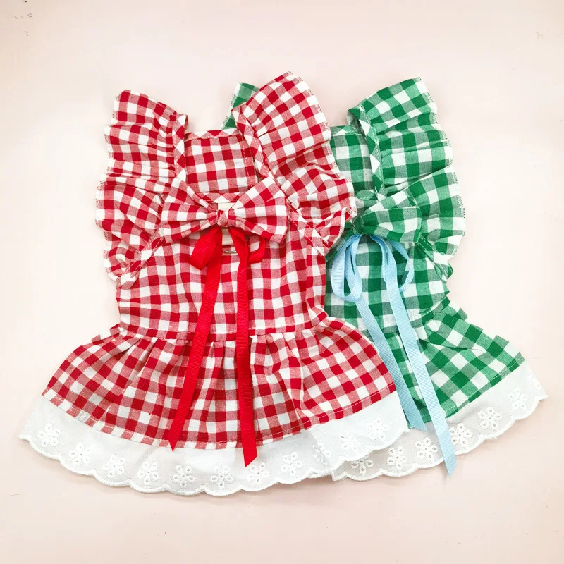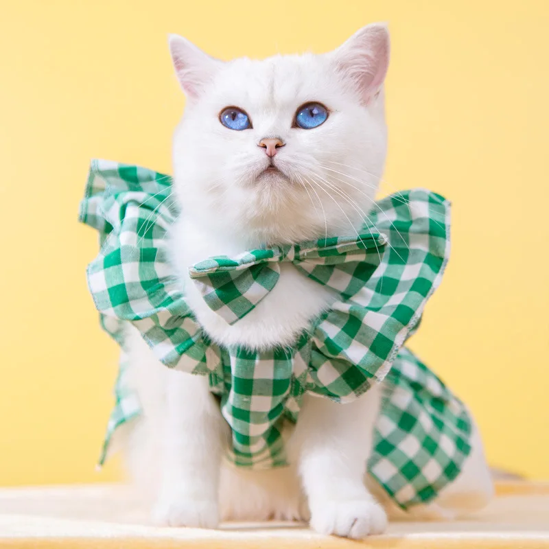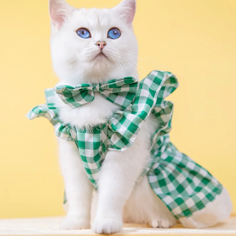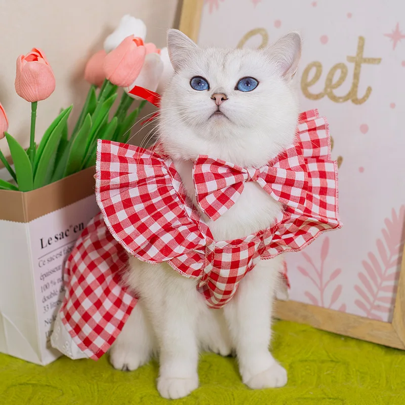 Conjunto de falda a cuadros de Navidad para otoño/invierno, pajarita, ropa para mascotas, ropa para gatos, vestidos para perros pequeños, ropa para cachorros