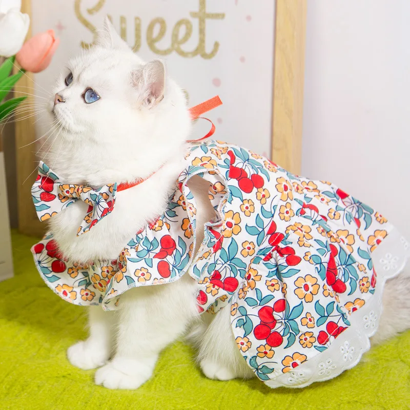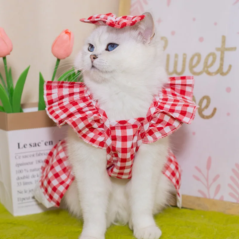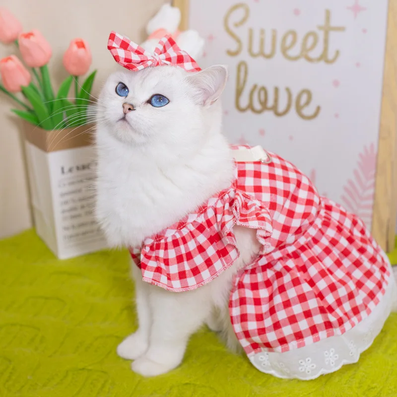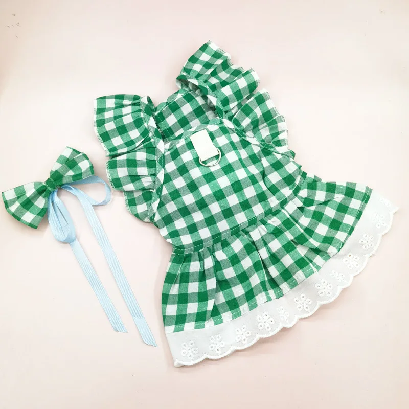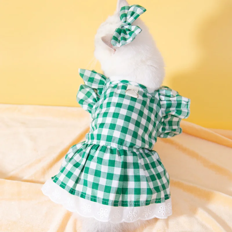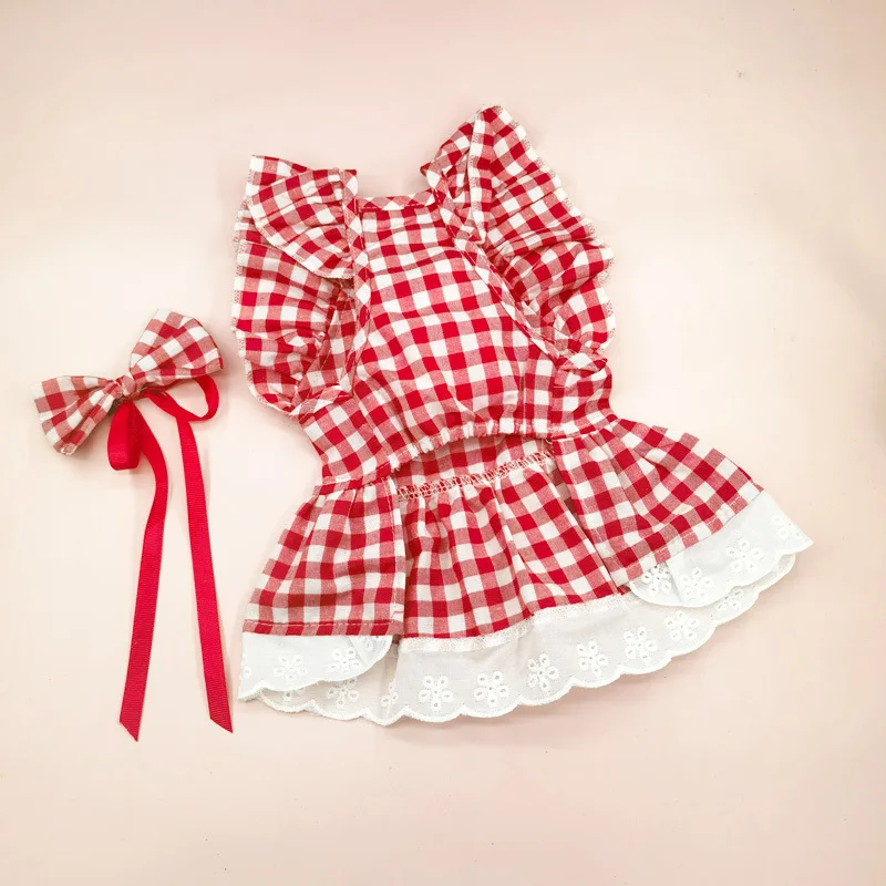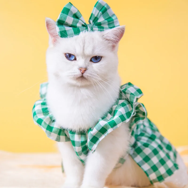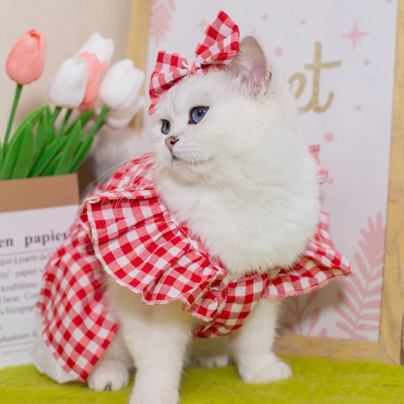 Conjunto de falda a cuadros de Navidad para otoño/invierno, pajarita, ropa para mascotas, ropa para gatos, vestidos para perros pequeños, ropa para cachorros