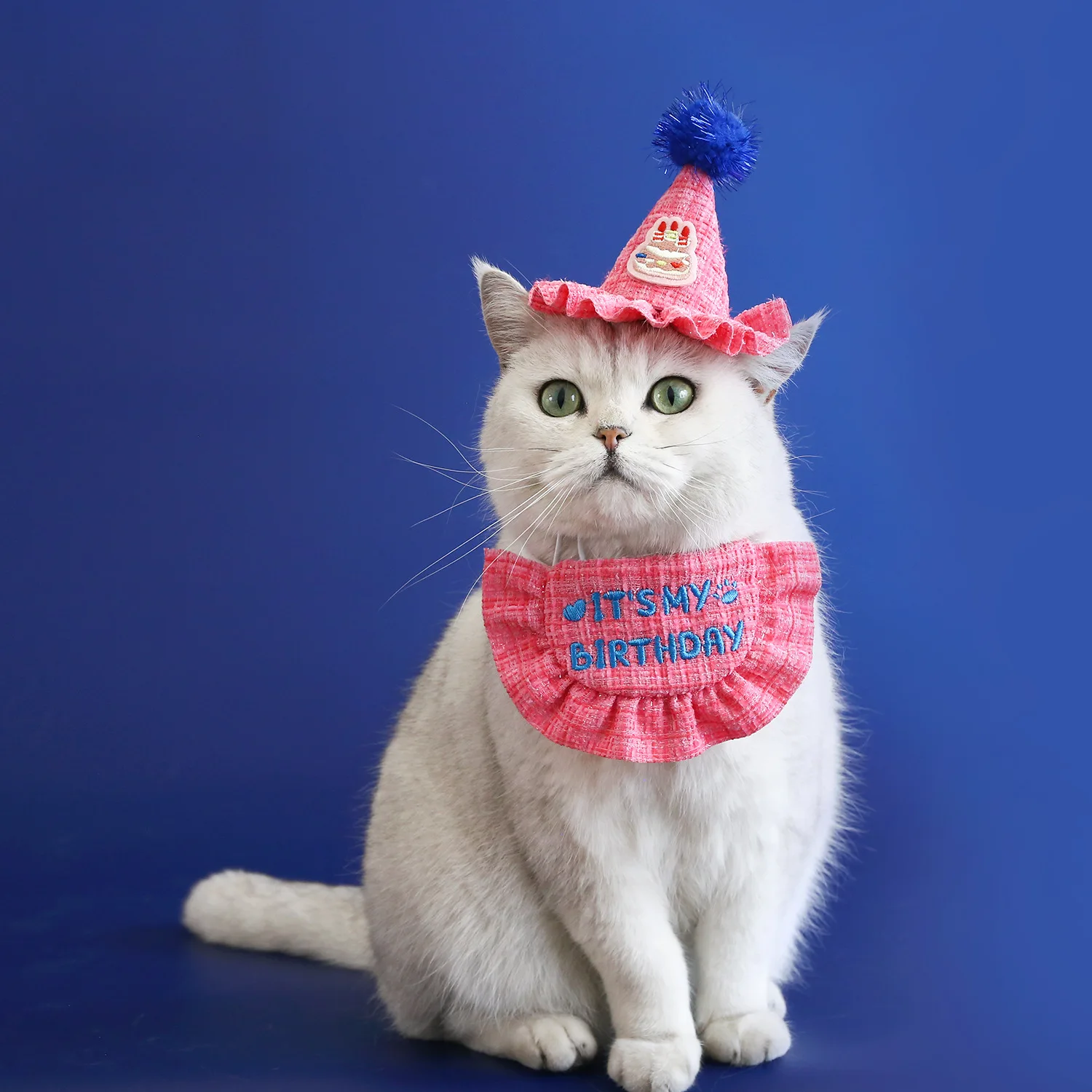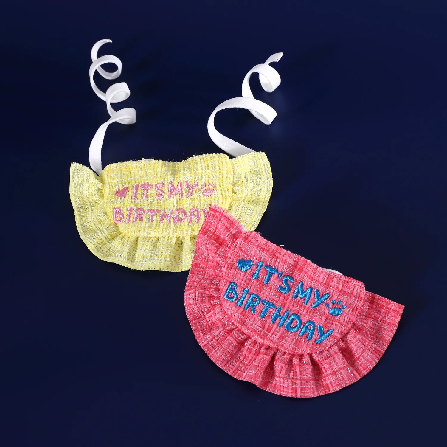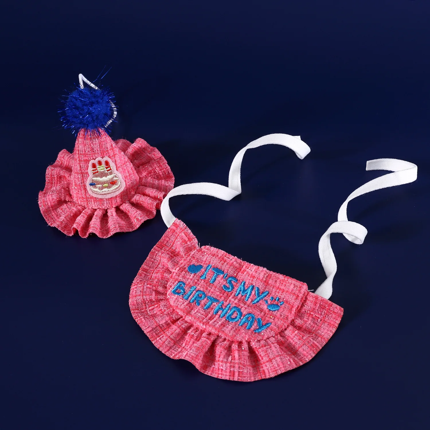 Conjunto de fiesta de cumpleaños para mascotas, babero de encaje bordado de feliz cumpleaños, sombrero, accesorios para cachorros, gatos y perros pequeños
