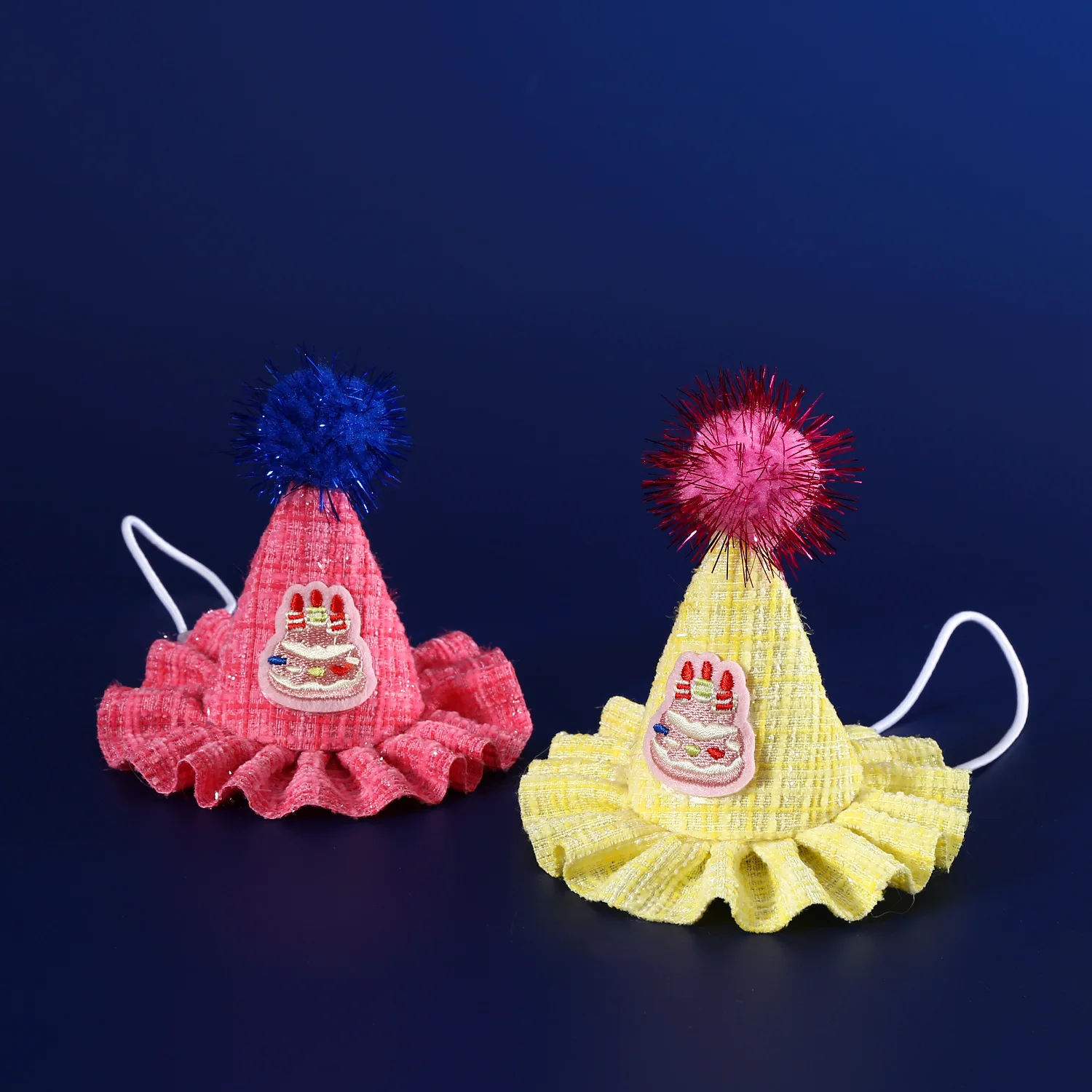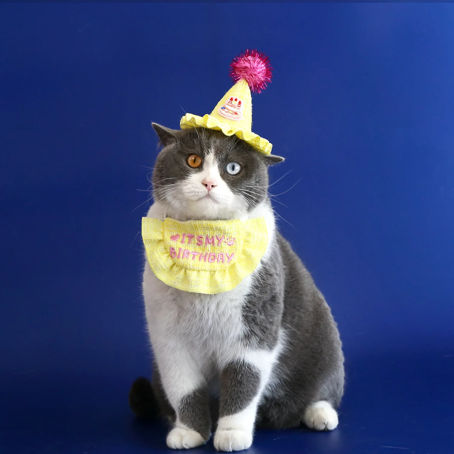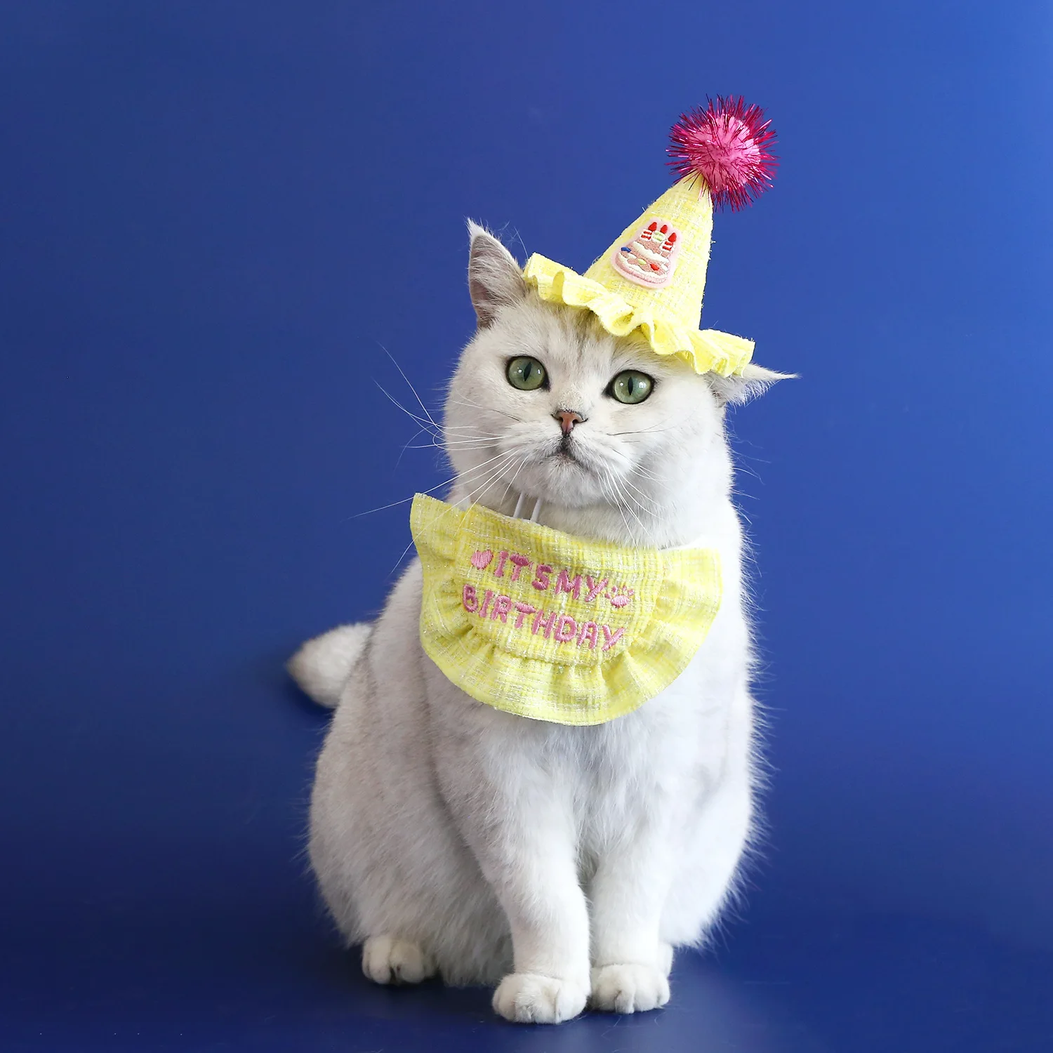 Conjunto de fiesta de cumpleaños para mascotas, babero de encaje bordado de feliz cumpleaños, sombrero, accesorios para cachorros, gatos y perros pequeños
