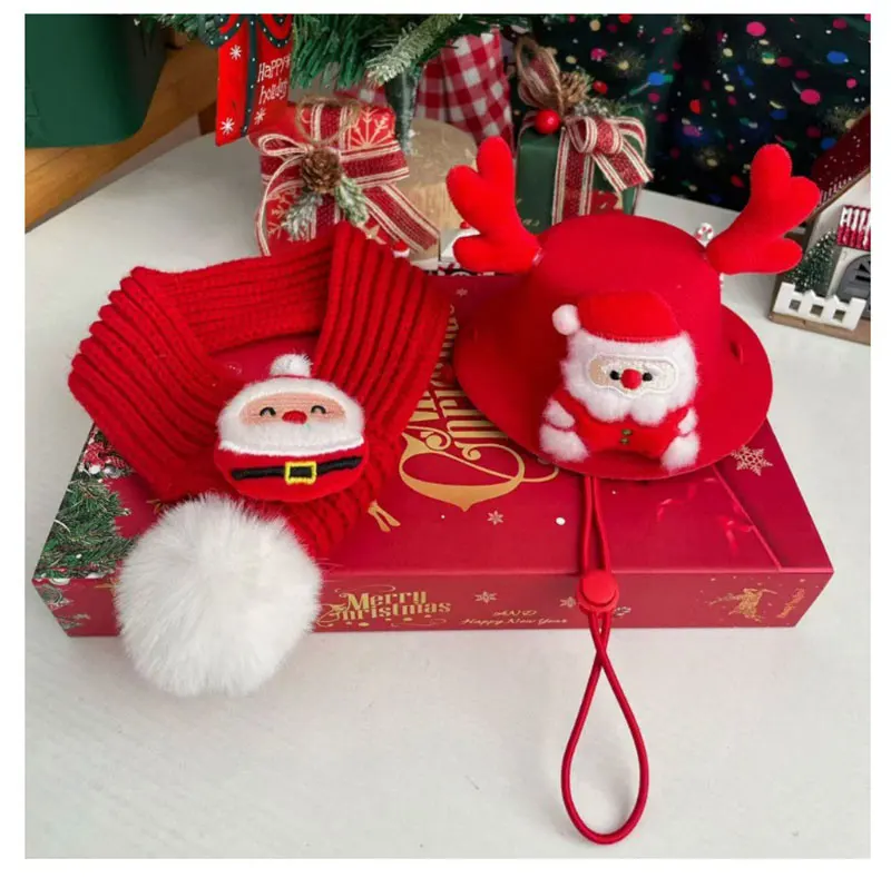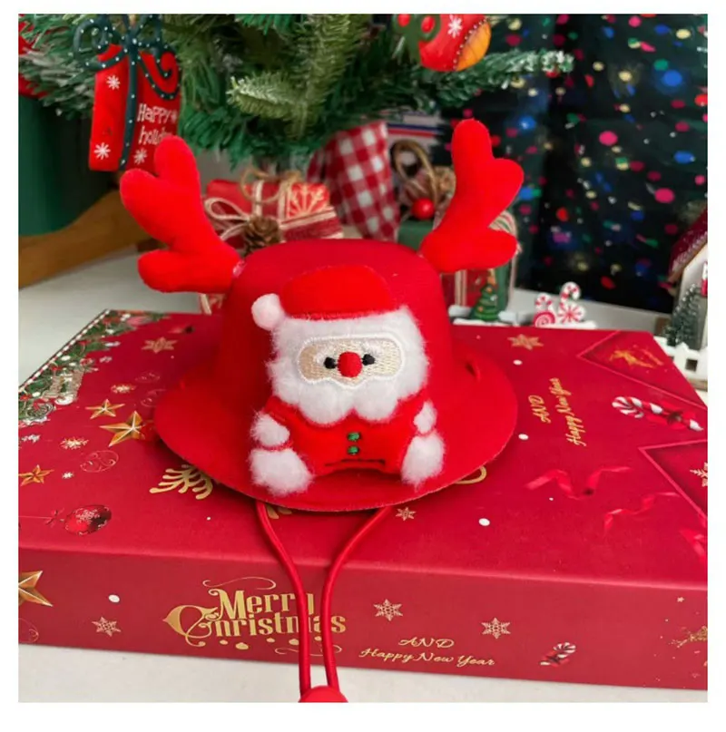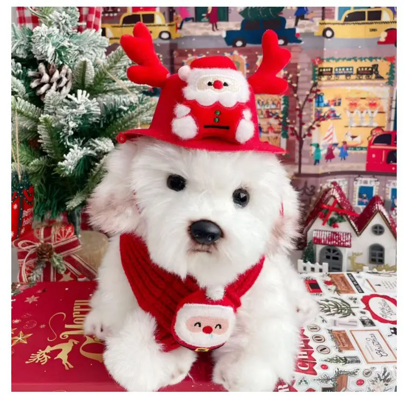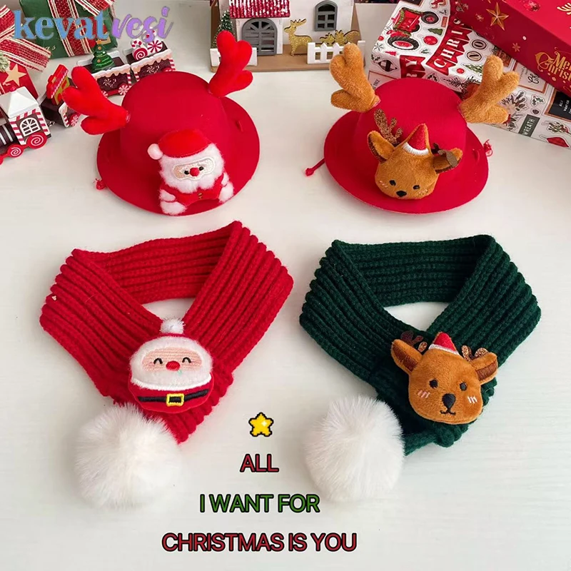 Conjunto de gorro y bufanda navideña para perro, bufanda tejida de alce para gatos, perros pequeños y medianos, gorro cálido de invierno para cachorros, accesorios para perros de Papá Noel