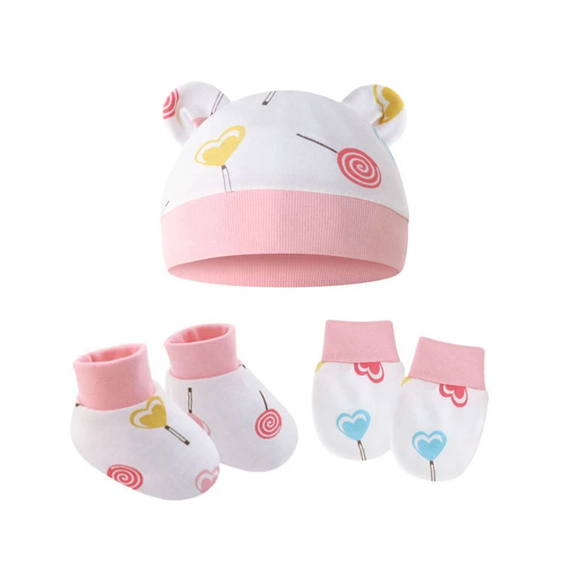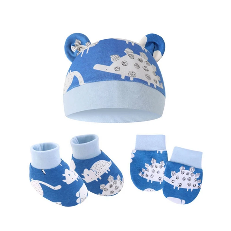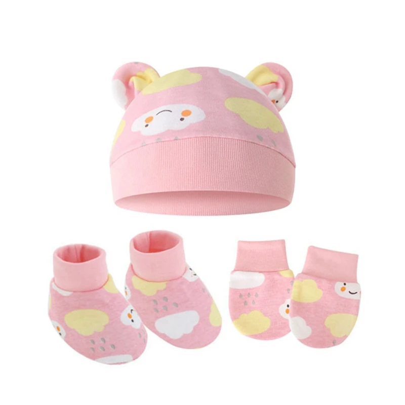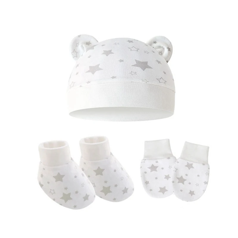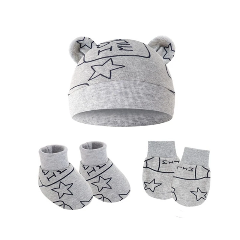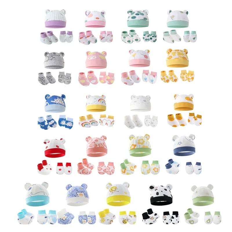 Gorro de bebé, guantes antiarañazos para bebé, cubierta de pie, conjunto de 3 piezas, gorro de oreja para recién nacido, aplicable de 0 a 6 meses