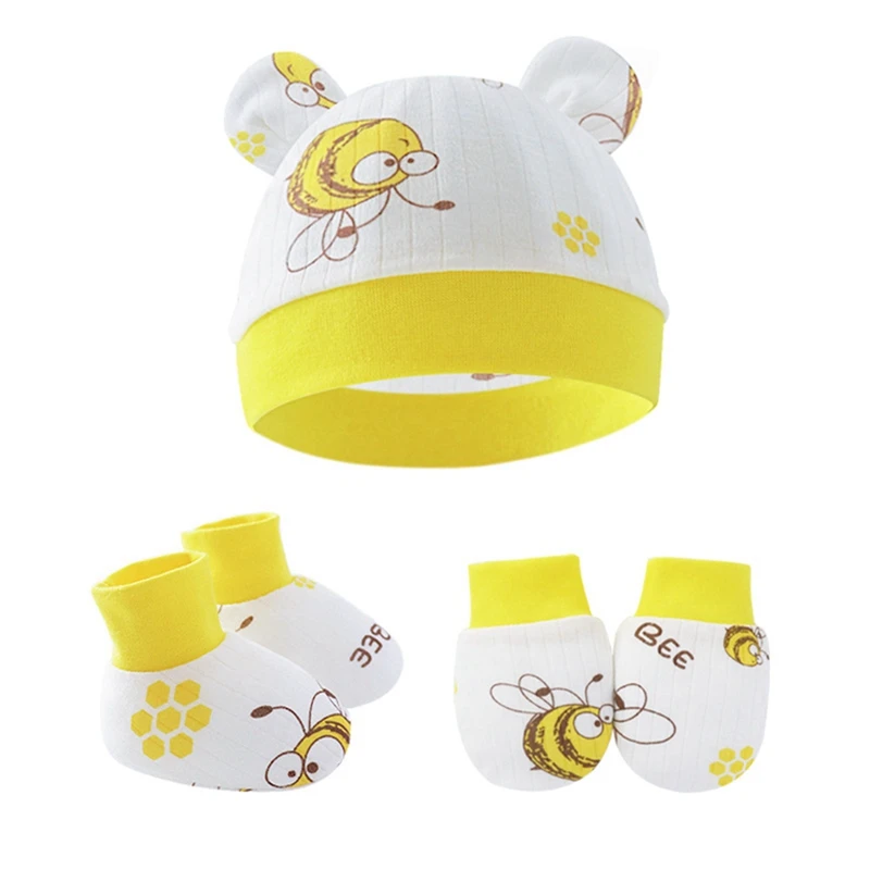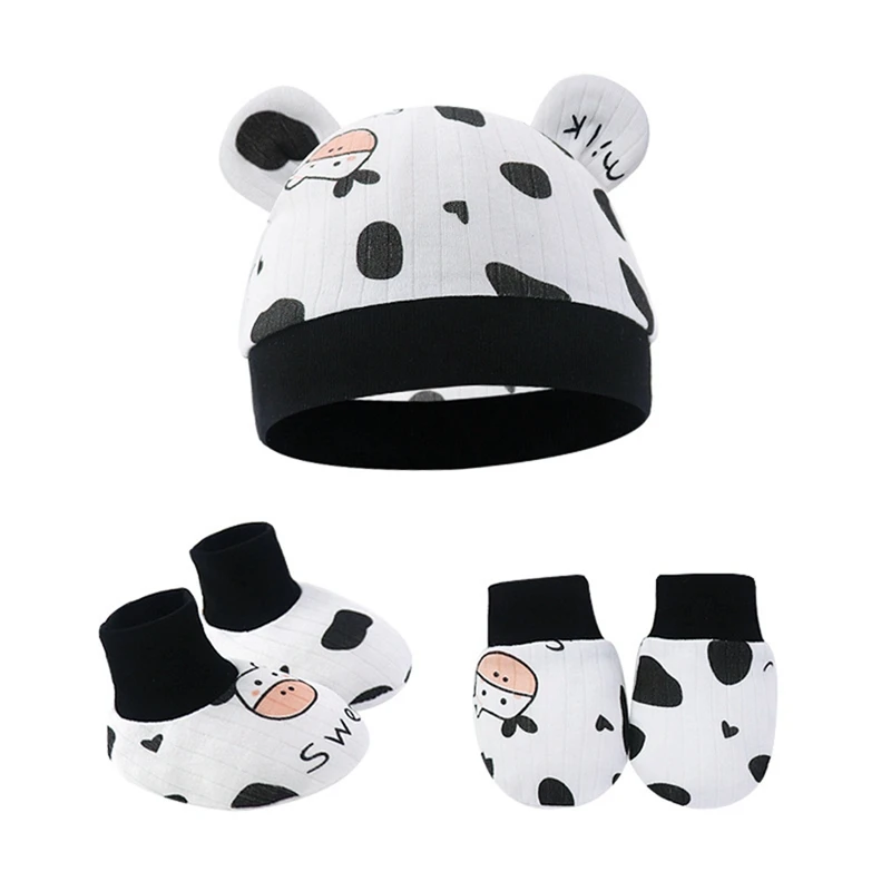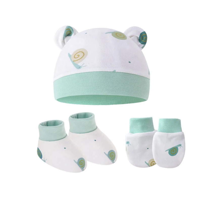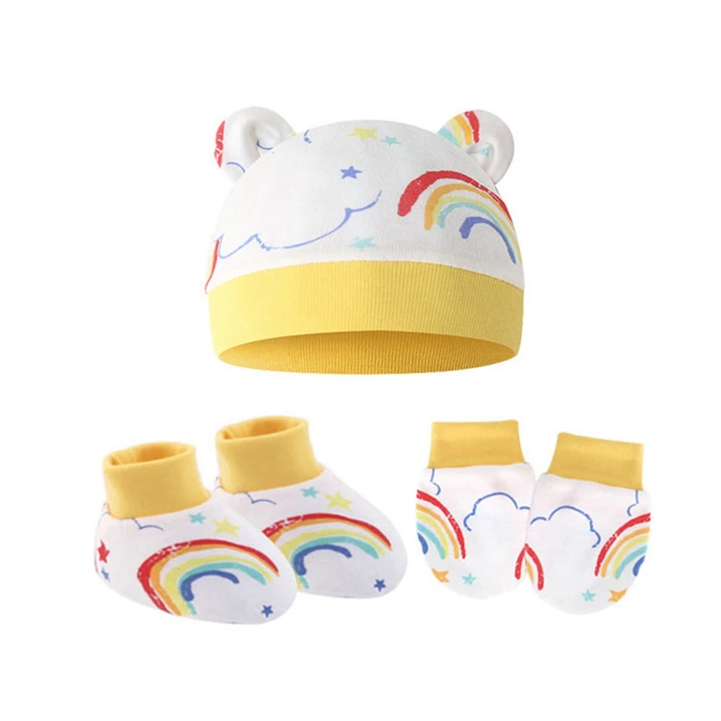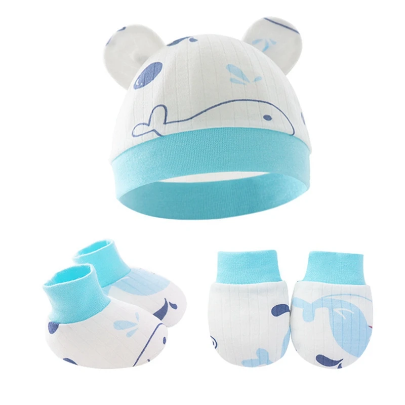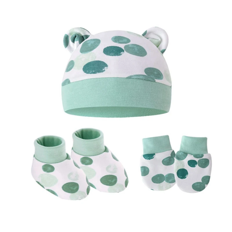 Gorro de bebé, guantes antiarañazos para bebé, cubierta de pie, conjunto de 3 piezas, gorro de oreja para recién nacido, aplicable de 0 a 6 meses