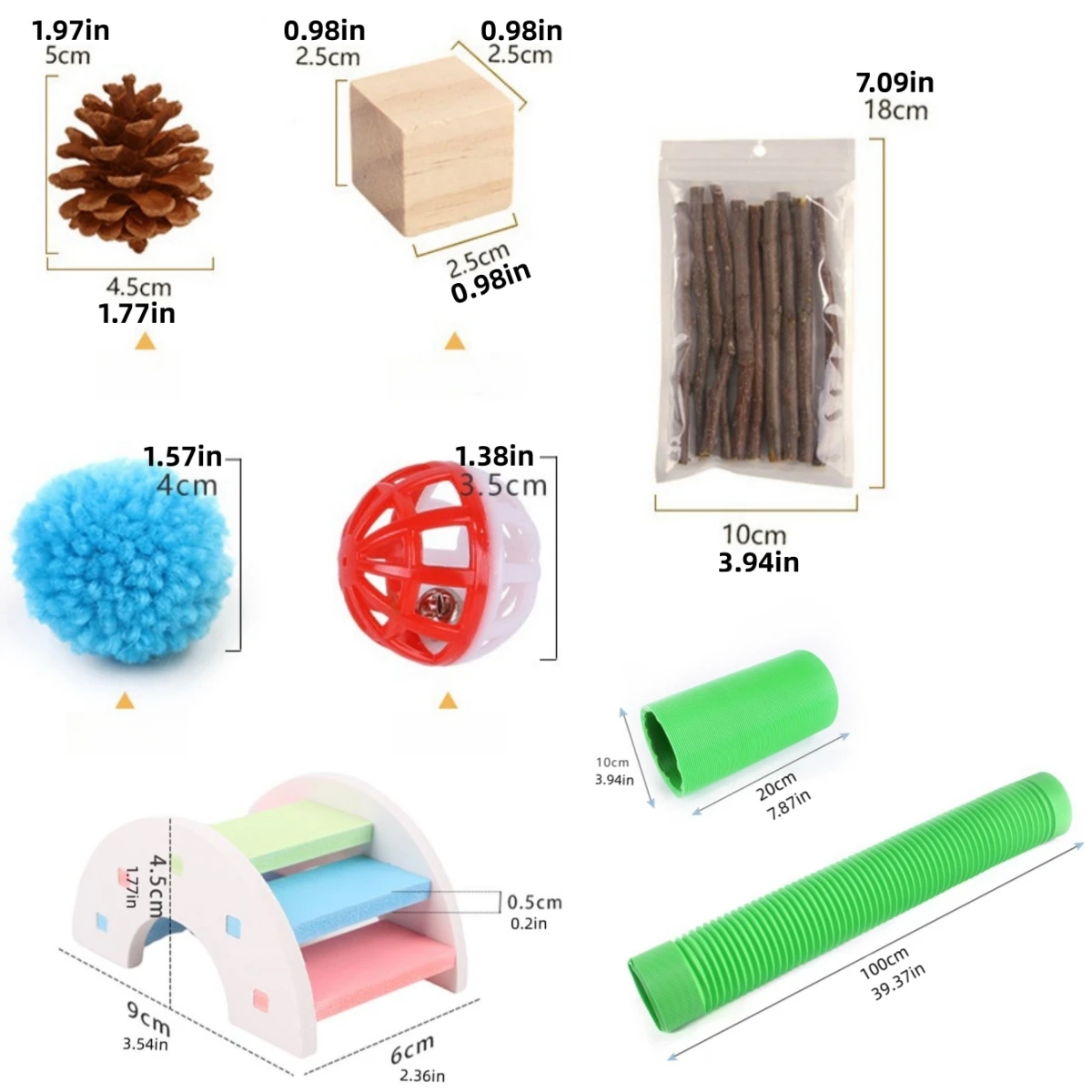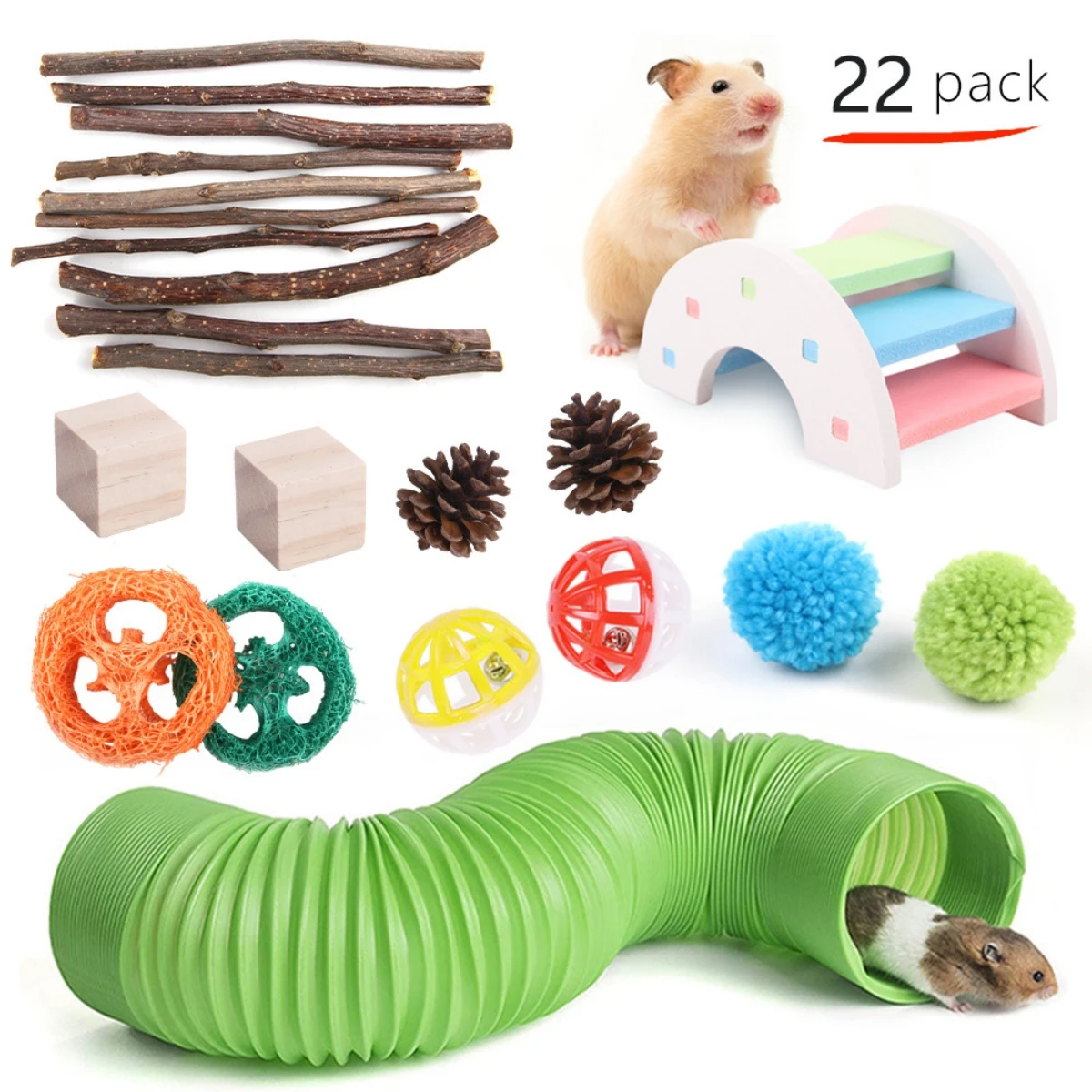 Conjunto de juguetes para hámster, cerdo holandés, conejo, rechinar dientes, morder, aliviar el estrés, suministros para mascotas pequeñas