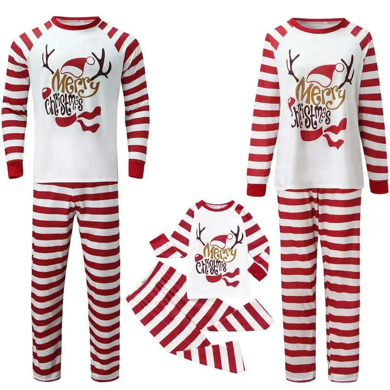 4. Impresionante regalo: Consigue que tu familia y amigos disfruten de las fiestas con estos pijamas festivos a rayas rojas y blancas. Un regalo perfecto para hacer que esta Navidad sea más feliz y alegre.