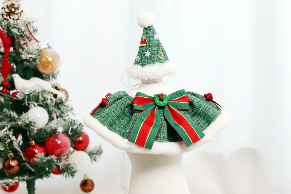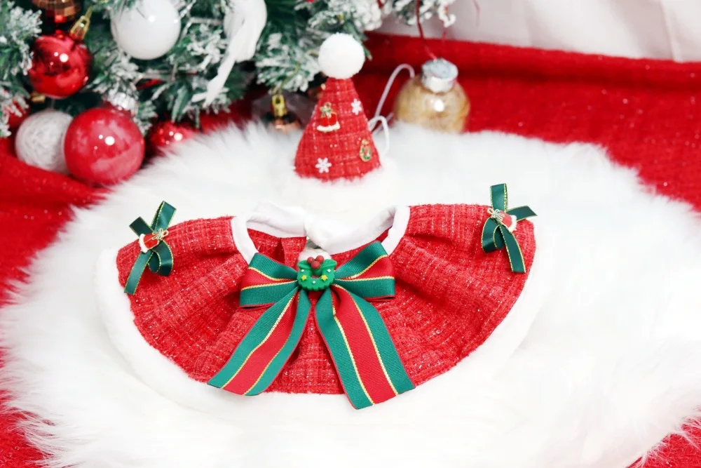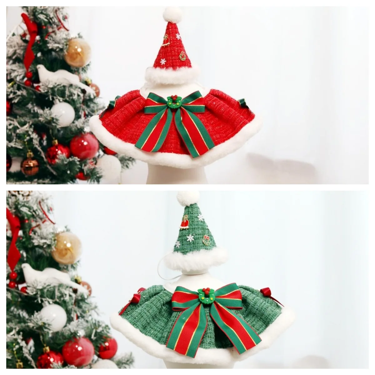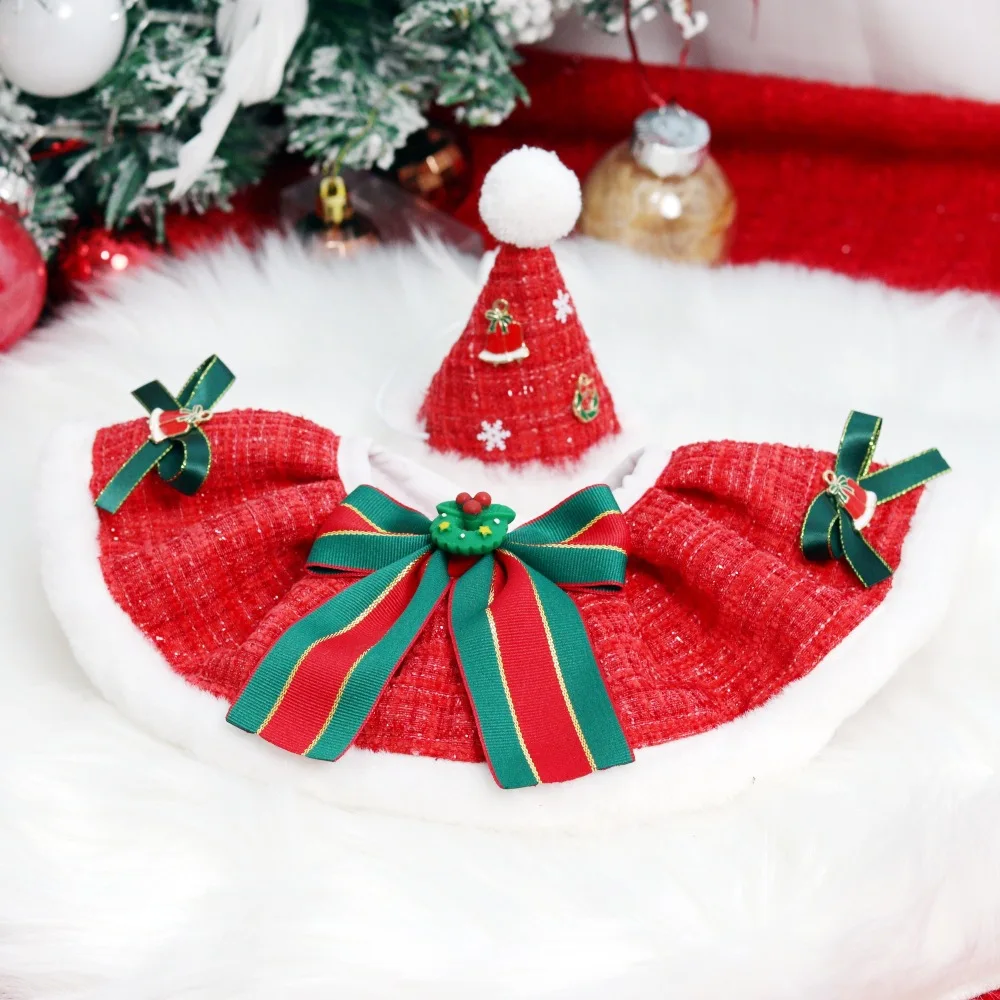 Conjunto de sombrero de Collar de Navidad para mascotas, babero para perros, accesorios para gatos, accesorios para perros pequeños