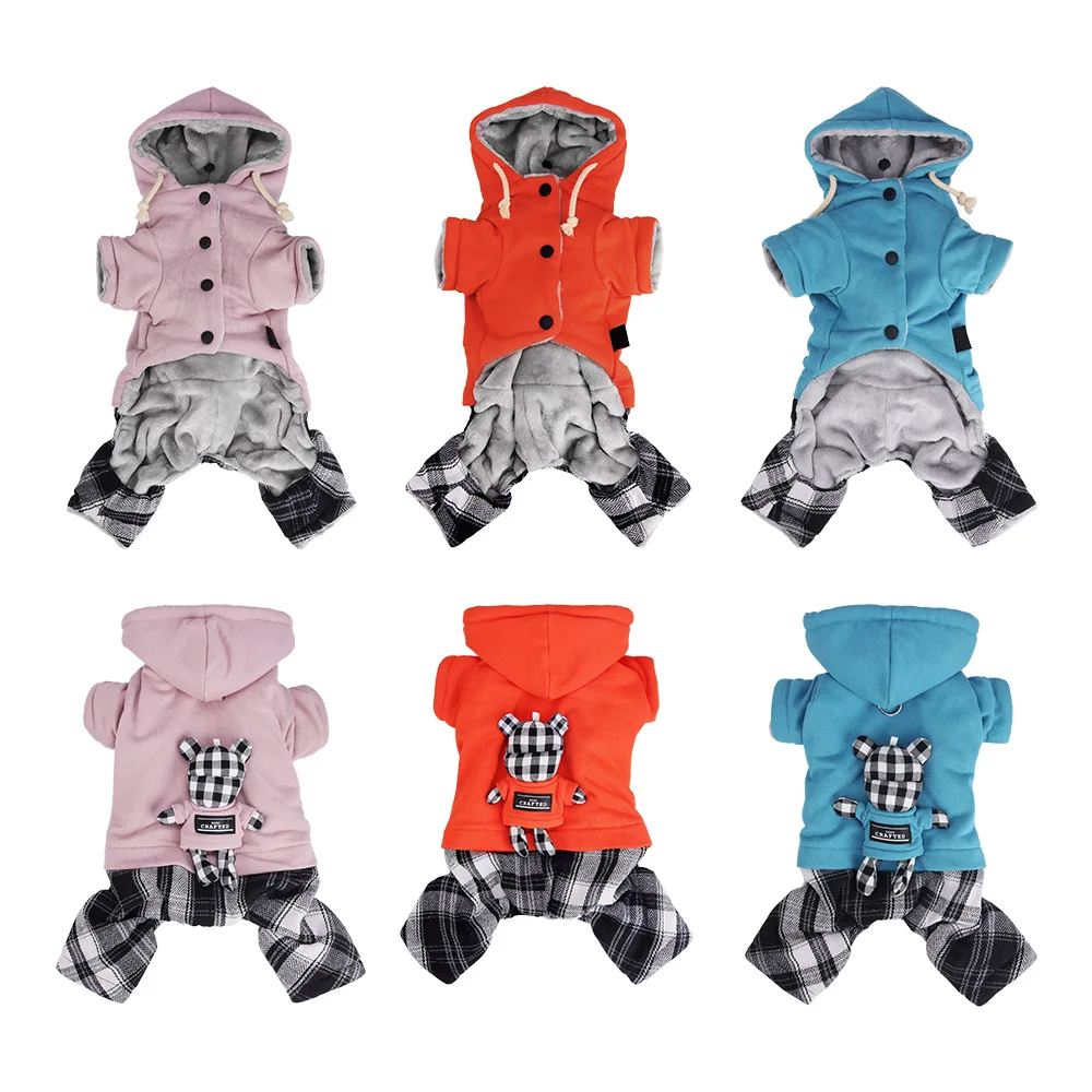 Conjunto de sudadera con capucha para perro de invierno, disfraz de oso de peluche, diseño de 4 patas forradas de franela para razas pequeñas y medianas, traje navideño para cachorros, mono para mascotas