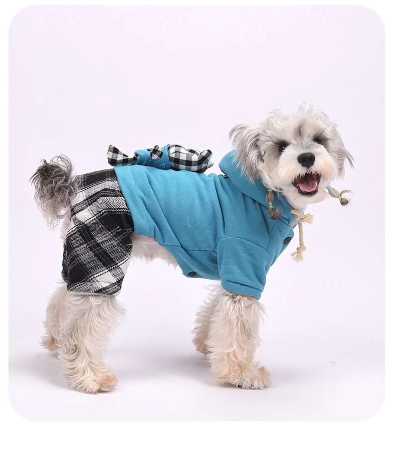Confeccionado con material forrado de franela, este conjunto de sudadera con capucha para perros brinda calidez y comodidad superiores para sus razas pequeñas y medianas durante el otoño y el invierno.