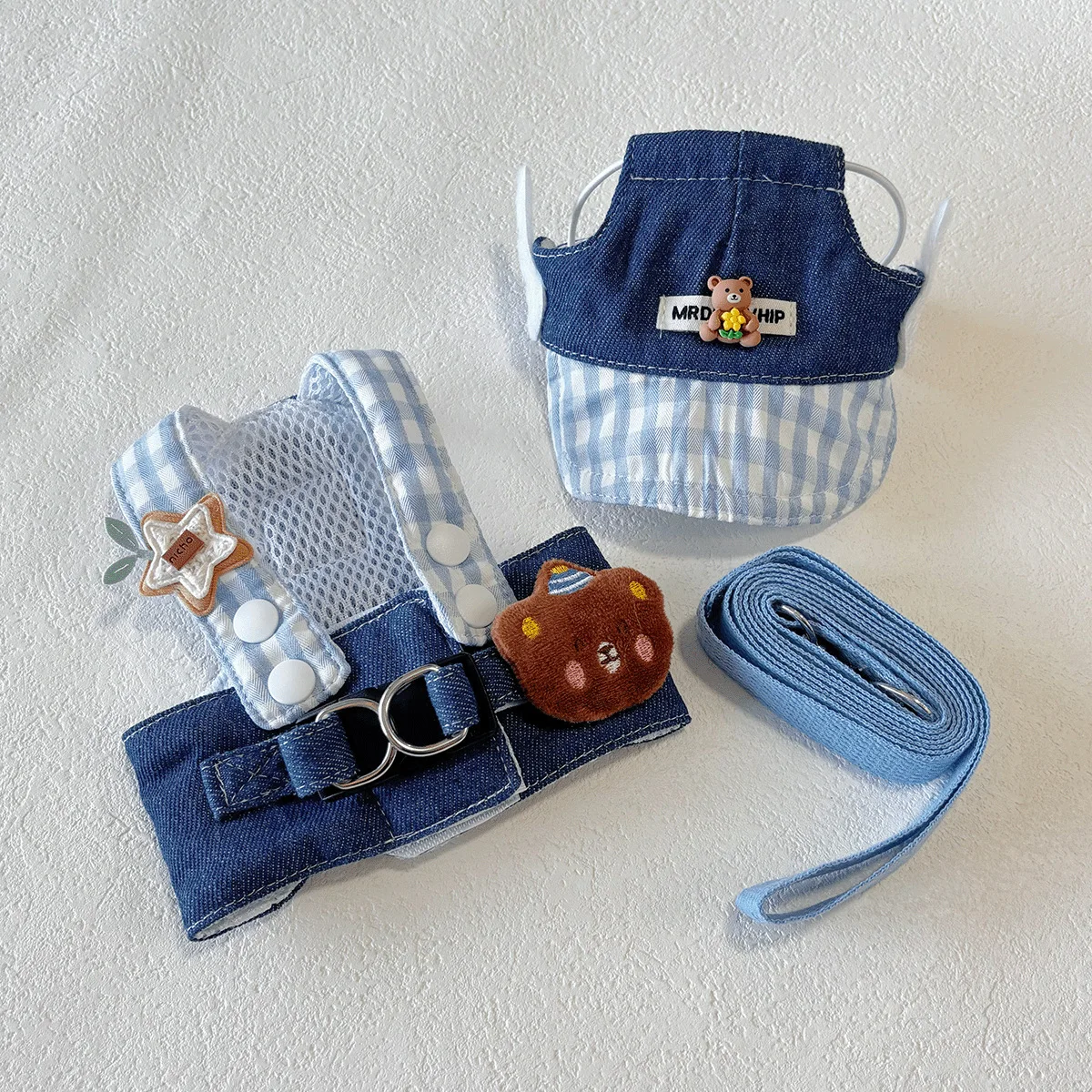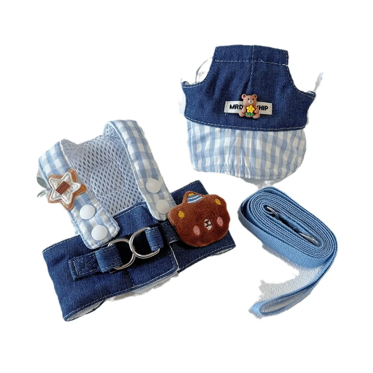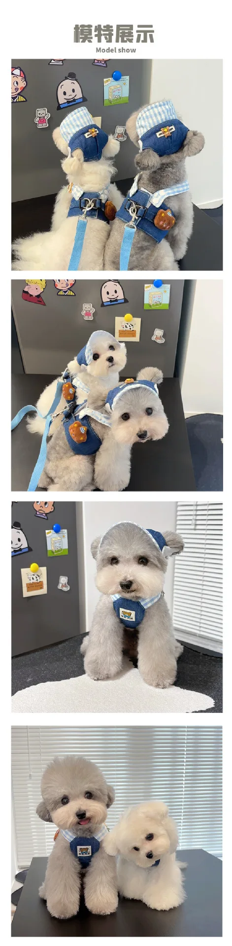 Conjunto de tracción para mascotas, chaleco de peluche para gatos, andador de perros a rayas, Yorkshire, chaleco vaquero de tracción, accesorios de arnés para perros, primavera y otoño