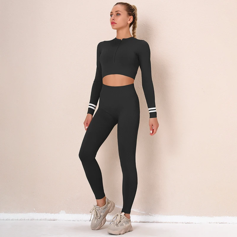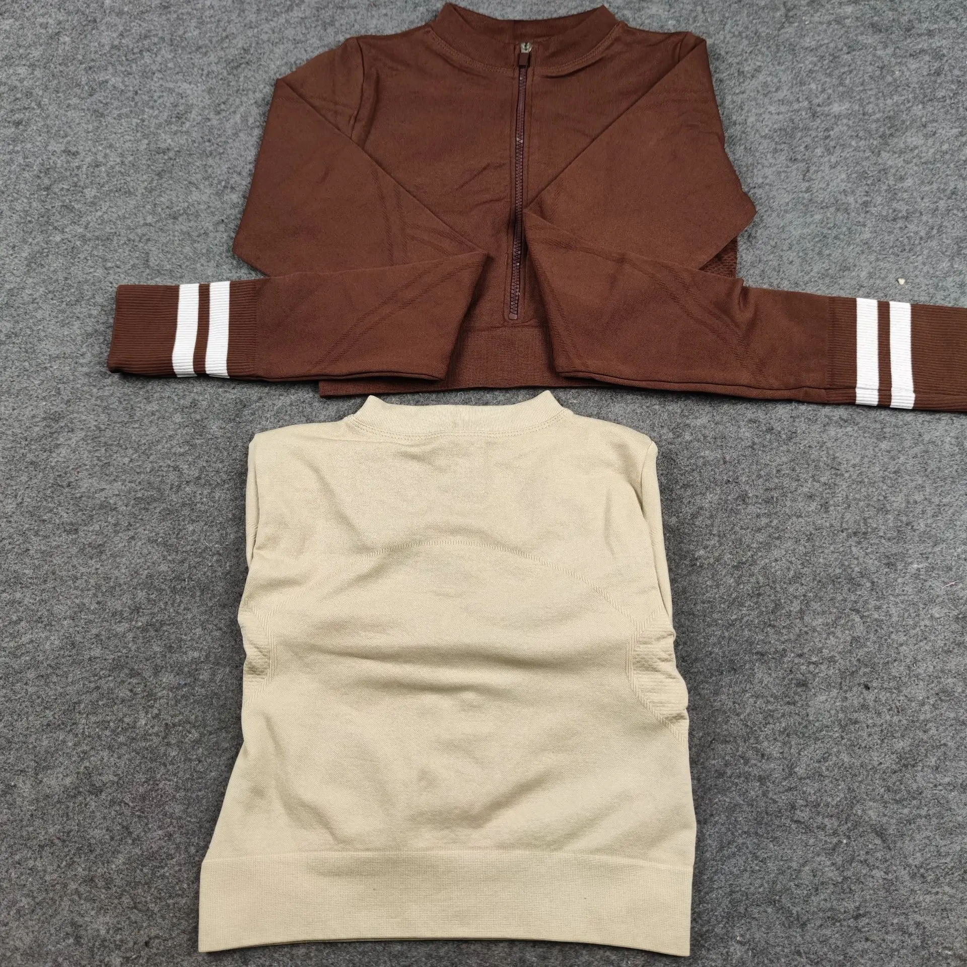 Conjunto de Yoga para mujer, ropa de gimnasio sin costuras, mallas elásticas de secado rápido con cremallera, ropa de entrenamiento, 2022