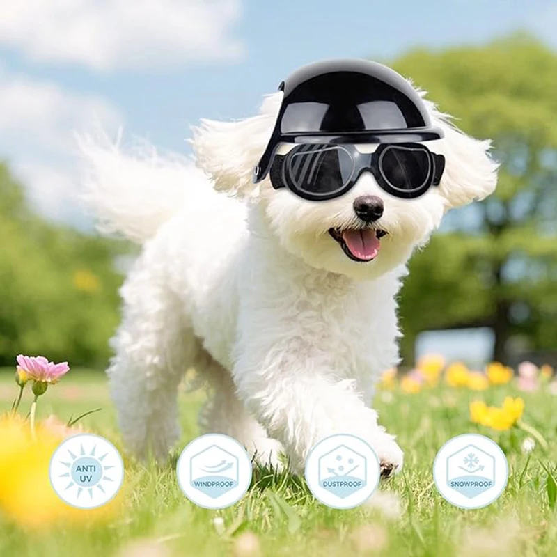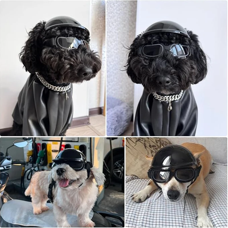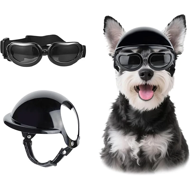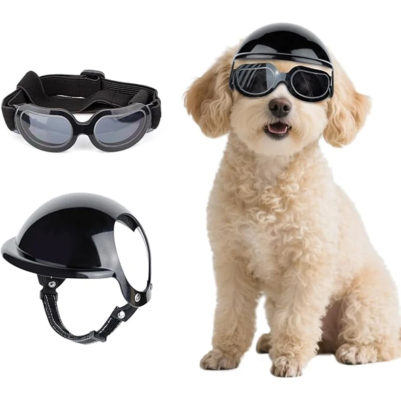 Juegos de casco y gafas de sol para perros, casco de motocicleta para perros de raza pequeña con orificios para las orejas, lindas gafas para perros para conducir al aire libre