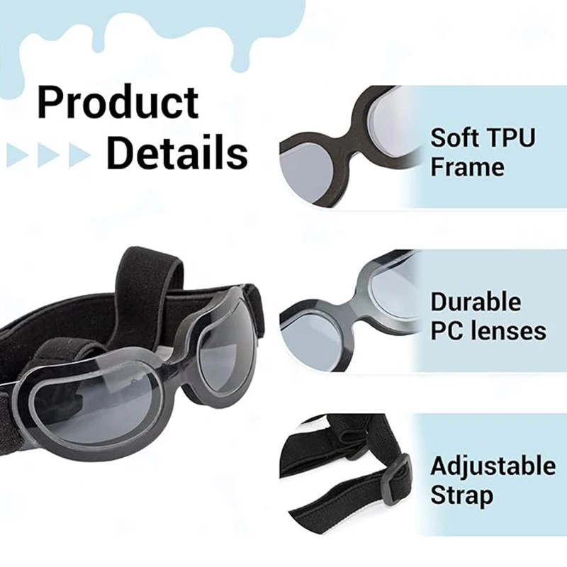 Proporcionar protección ocular:Las gafas para perros están hechas de lentes de PC de calidad de acuerdo con el estándar UV400, adecuadas para usar en verano caluroso para reducir el daño de la luz intensa y evitar que entren residuos en los ojos de los cachorros cuando sacan la cabeza, especialmente buenas para mascotas que han sido sometidas a cirugía ocular.