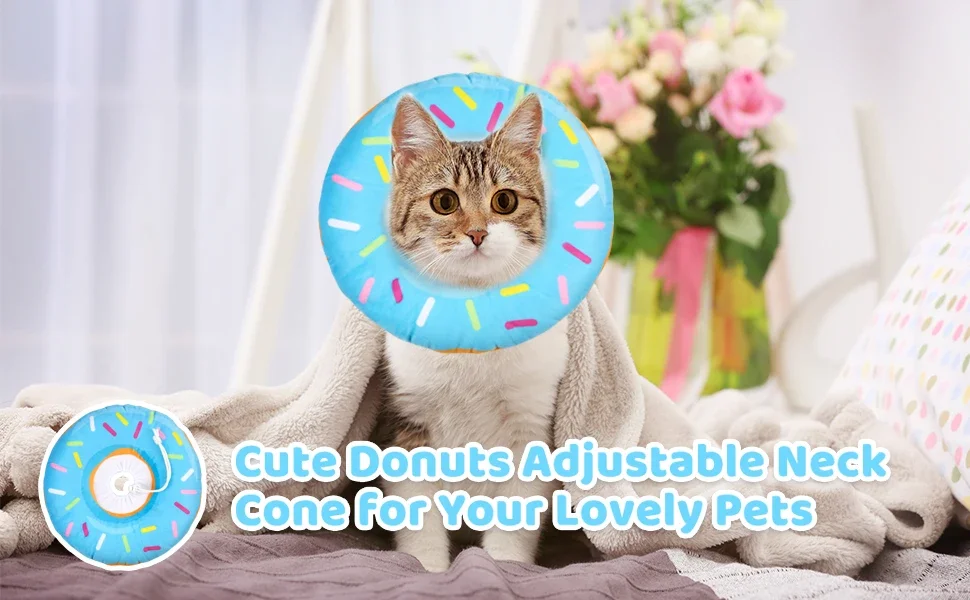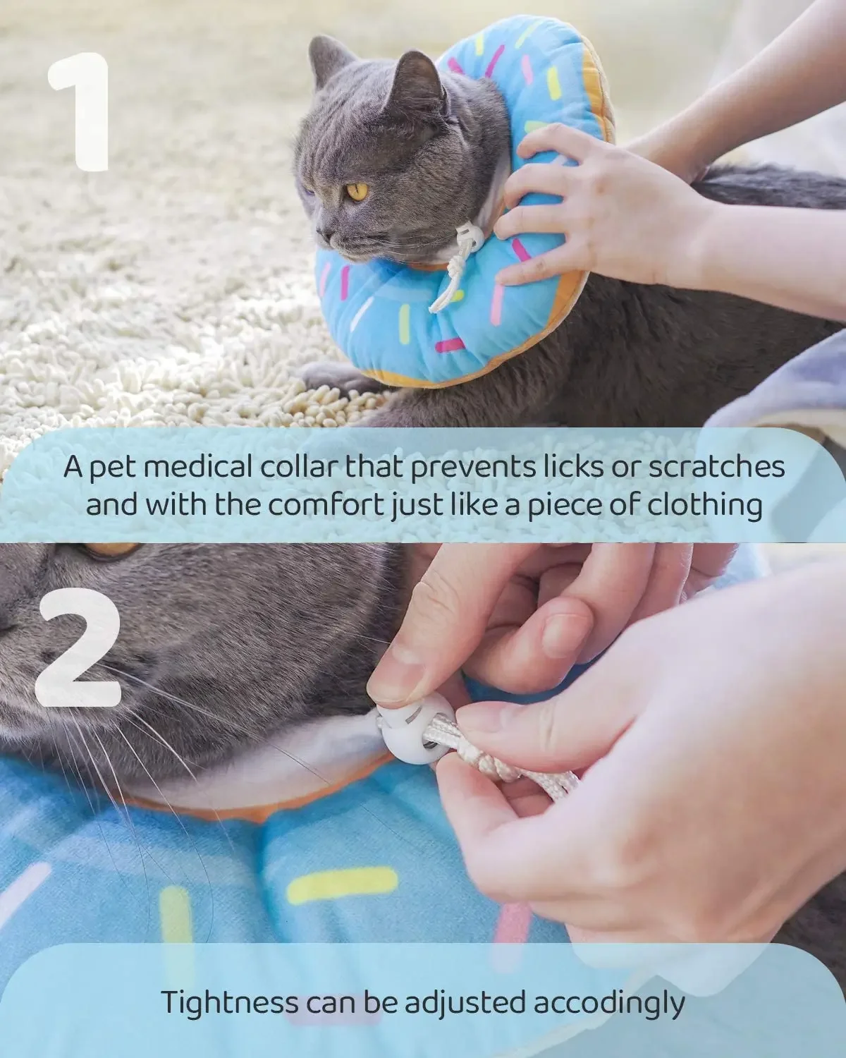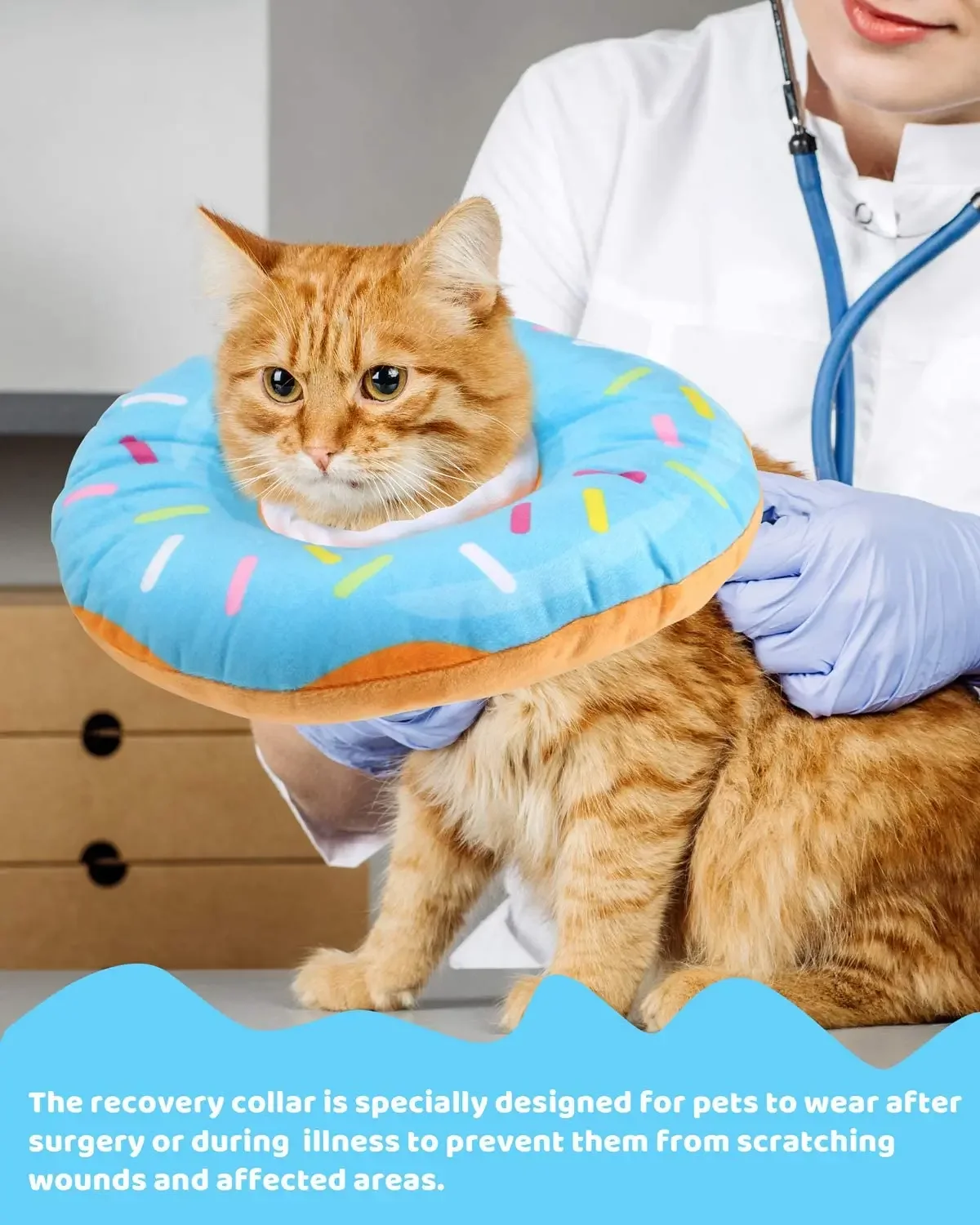 Cute Recovery Collar: Designed into a cute and interesting donut model, perfectly suitable for your cute kitty, loving the portable cushion as a pillow, not rigid like cones