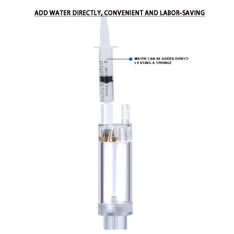 Ventajas: en el proceso de uso de CO2, el agua en el burbujeador se consumirá lentamente y es necesario agregar agua, pero es más problemático desmontar y agregar agua. Actualizamos para usar el puerto de la jeringa para agregar agua directamente, lo cual es conveniente y simple.