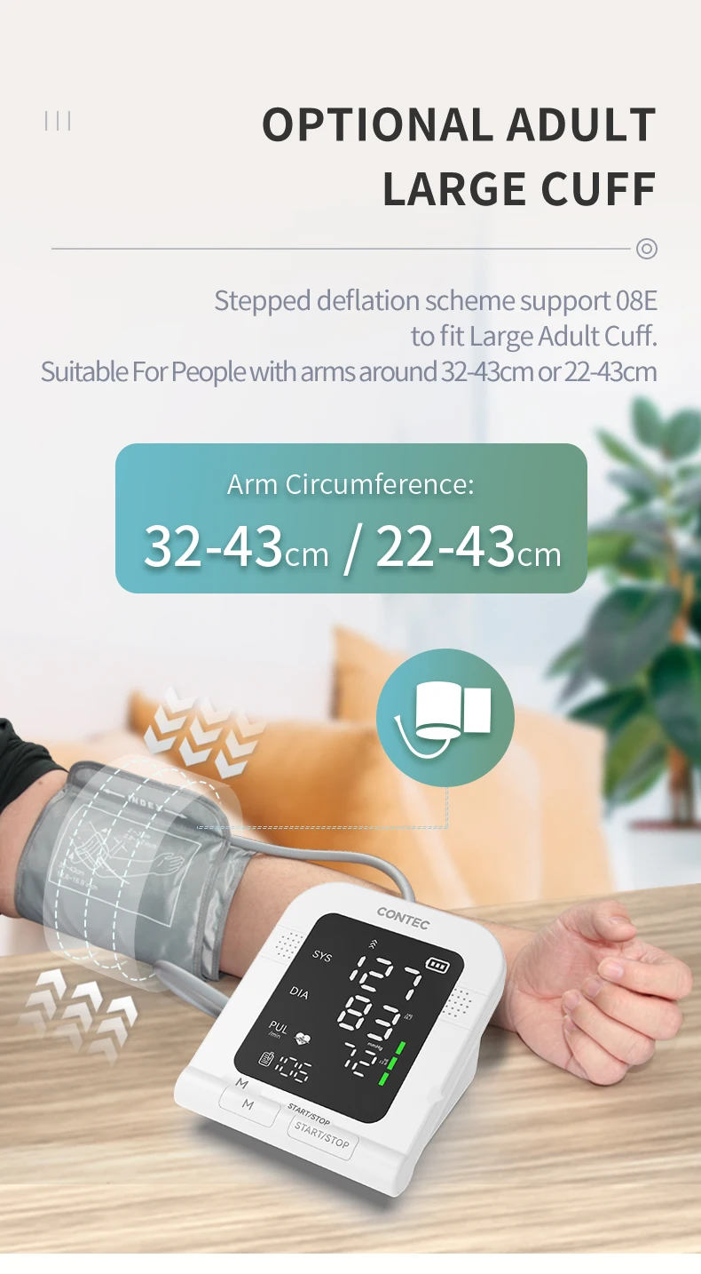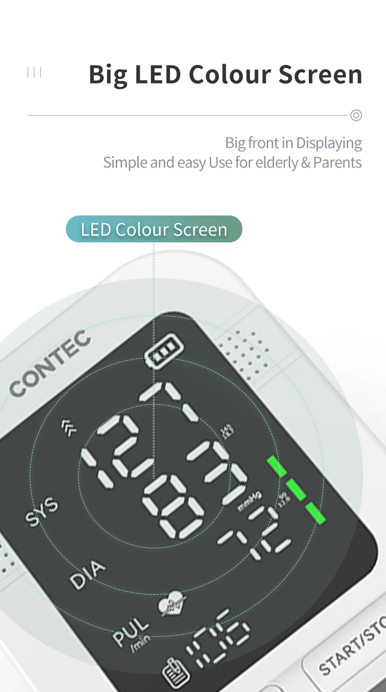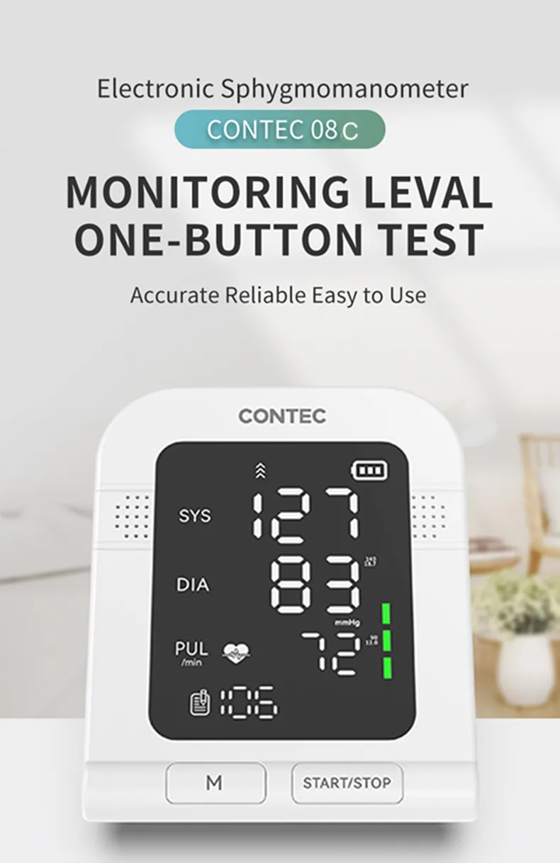 El monitor de presión arterial CONTEC tiene una medición con un botón, pantalla grande en pulgadas que puede usar más