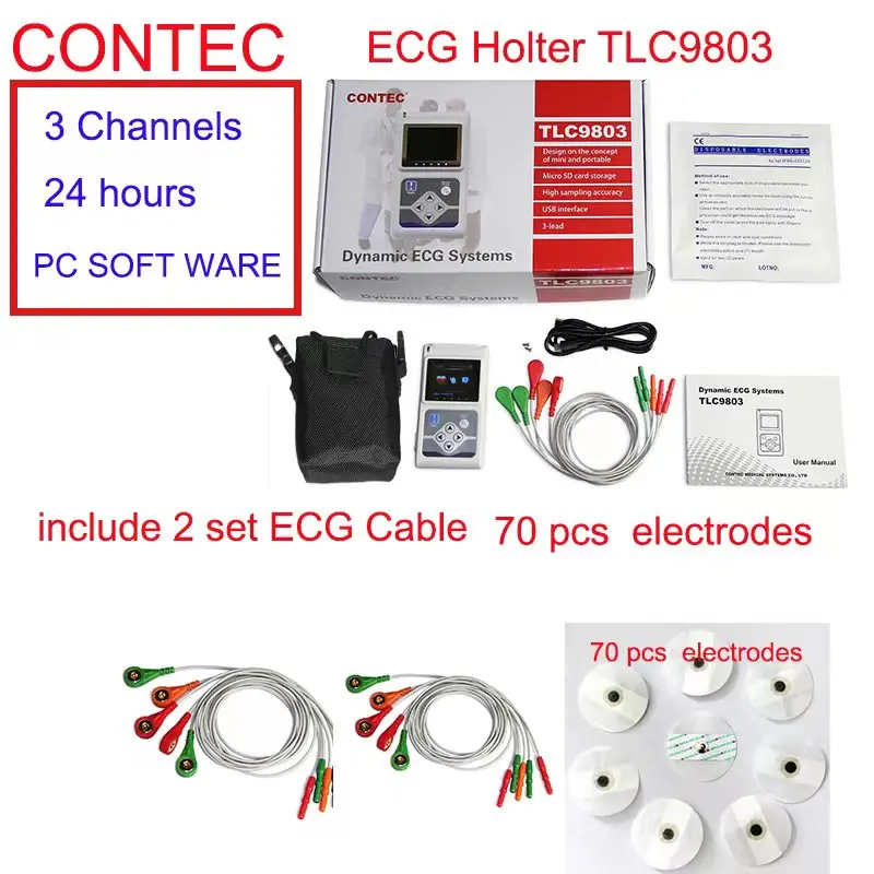 R 3 canales ECG Holter TLC9803 ECG EKG Electrodo Parche Médico Desechable