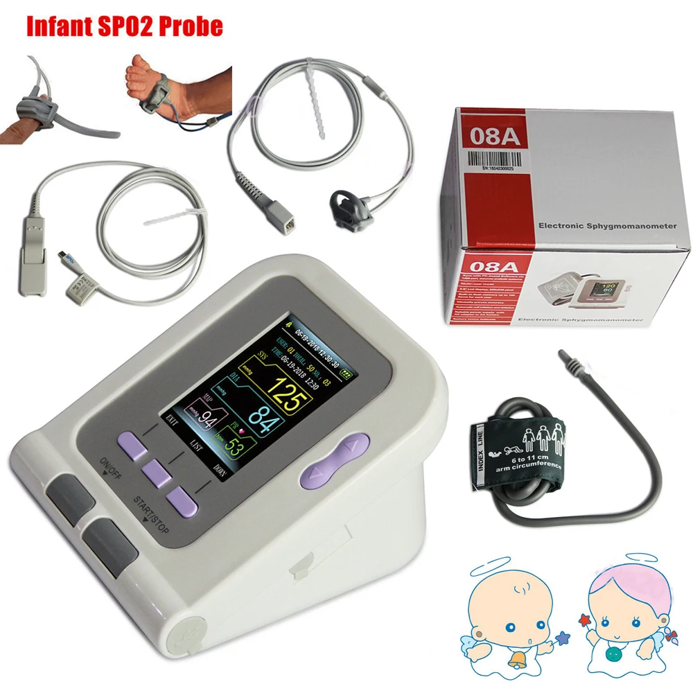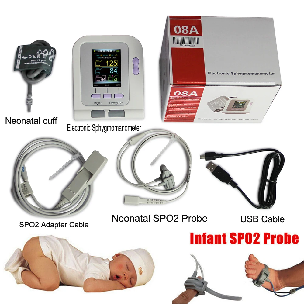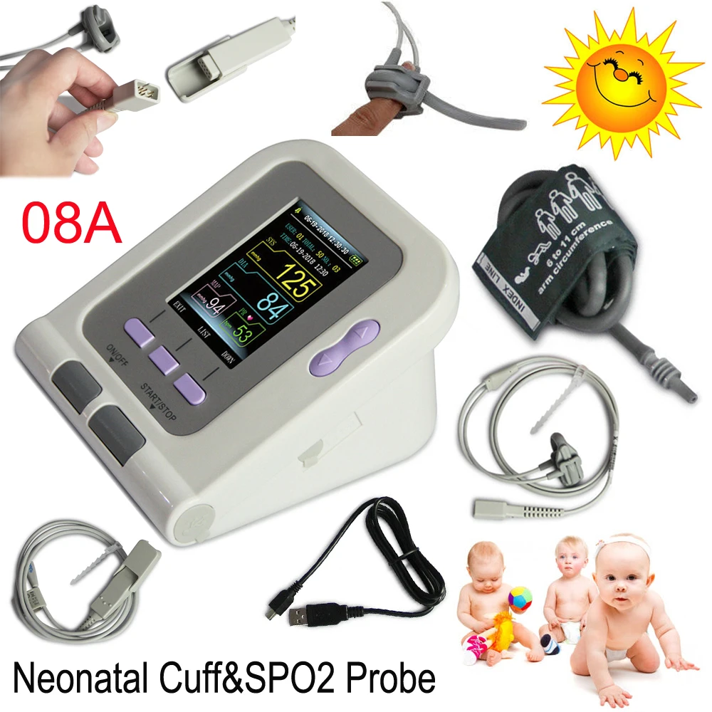 CONTEC08A is a desktop Neonatal Electronic Sphygmomanometer,High-definition color LCD display,supply English/Chinese interface,Strong visibility.Fully automatic blood pressure measure,it can be a household sphygmomanometer which is used for adult, pediatric and neonatal.The device has the function of parameter measure,display and record output,and adopt data review interface such as "data list", "trend chart", "big font",with SpO2 measure function(with optional SpO2 probe).It can be applied to the clinique,physical center and daily health care of family member.