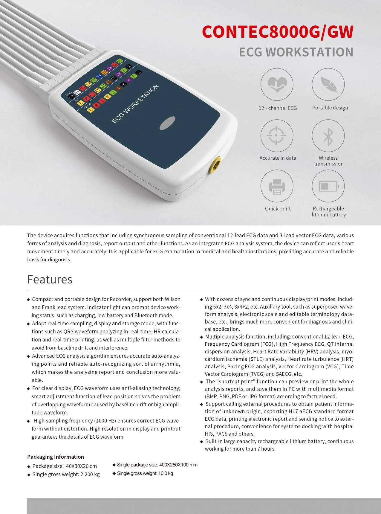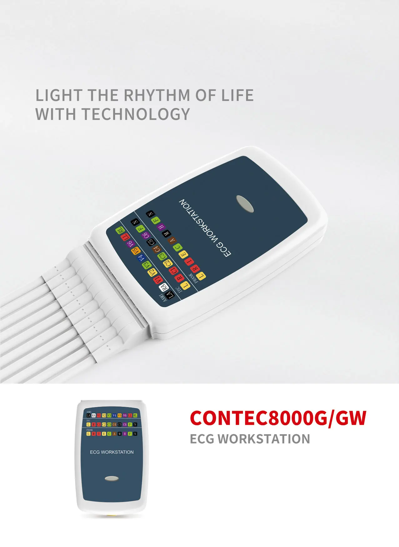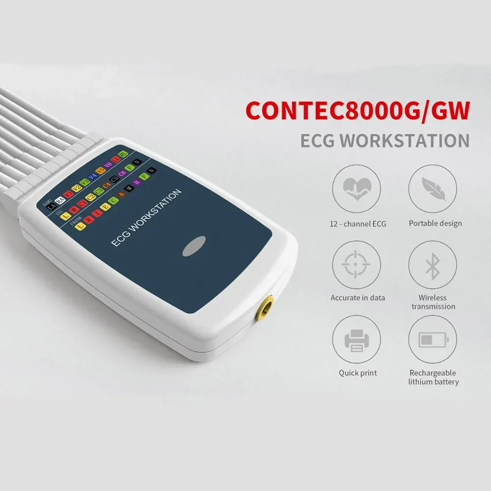 CONTEC8000G/GW ECG/EKG sistema de estación de trabajo portátil multifunción 12 derivaciones máquina de ECG de descanso impresión rápida + software