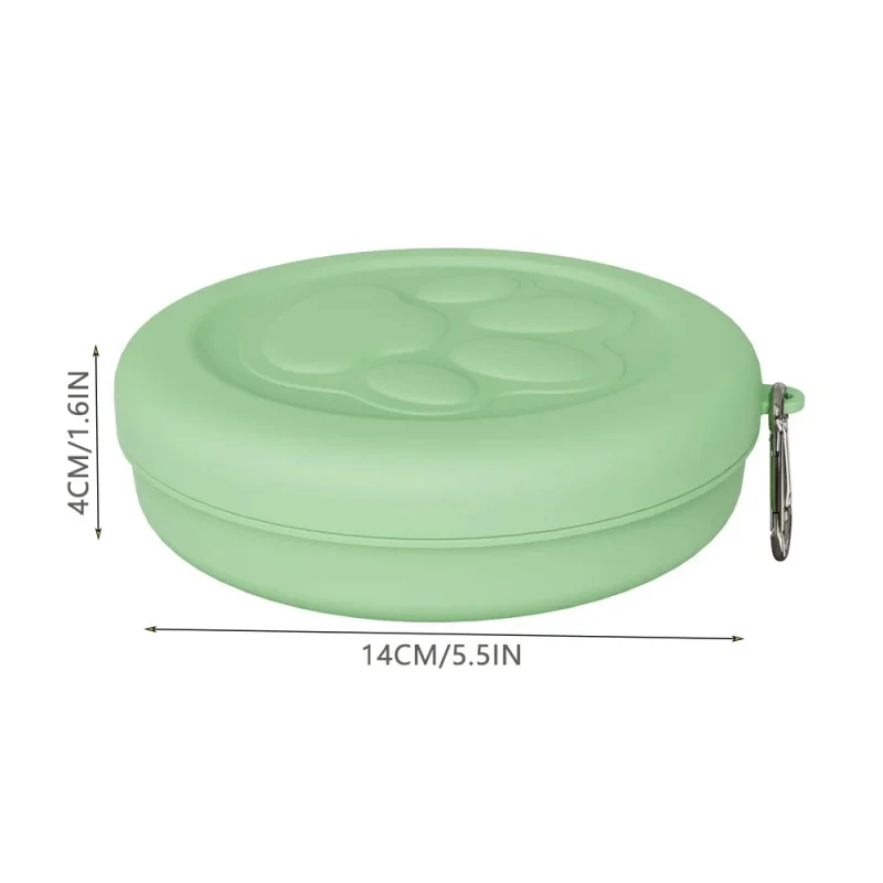 Este contenedor de comida portátil para mascotas es imprescindible para los dueños de mascotas en movimiento. Presenta un lindo diseño con estampado de patas en la tapa, que agrega un toque de encanto. Fabricado con materiales duraderos y de calidad alimentaria, garantiza la seguridad de la comida de su mascota. La estructura compacta y liviana facilita su transporte en bolsas o fijación a las correas con el práctico mosquetón. Con un interior de buena capacidad, puede contener suficiente comida para su mascota durante paseos, viajes o aventuras al aire libre. La tapa segura mantiene la comida fresca y evita derrames, por lo que no tiene que preocuparse por la suciedad. Disponible en bonitos colores, no sólo es práctico sino también visualmente atractivo. Ya sea que vaya al parque o realice un viaje largo, este contenedor hace que alimentar a su mascota sea libre y organizada.