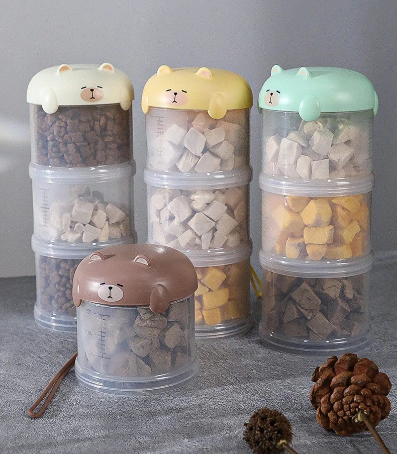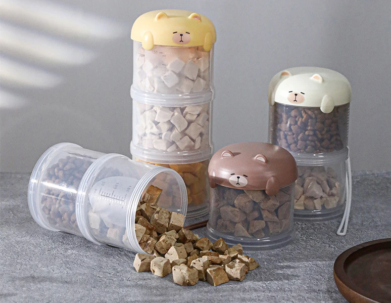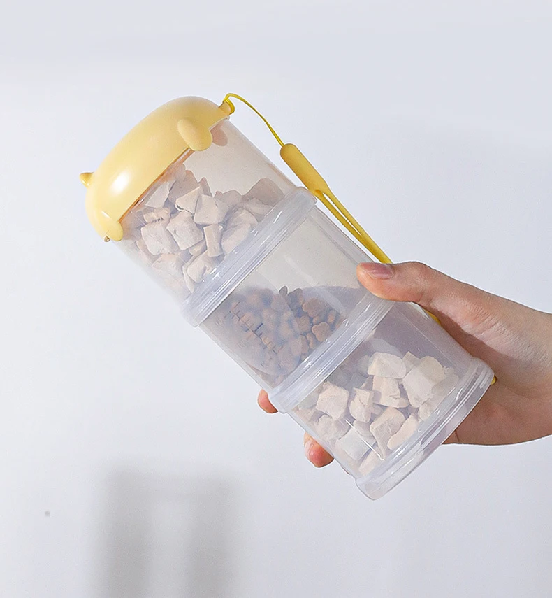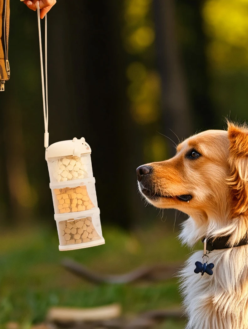 1. Diseño de tres capas, bocadillos y comida para perros se empaquetan por separado.