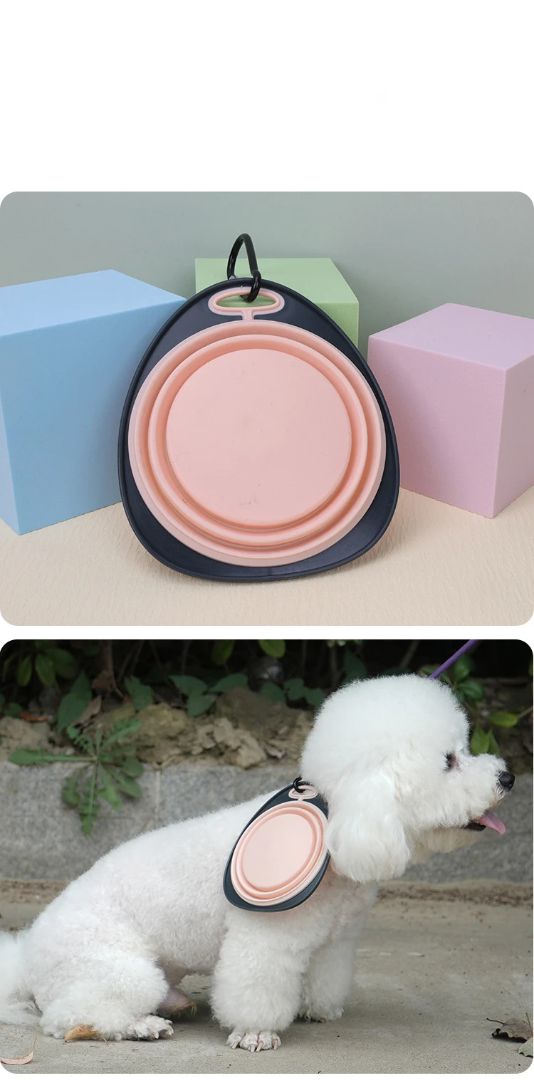 Contenedor de comida para cachorros portátil plegable para viajes al aire libre, plato alimentador, suministros para mascotas, cuenco de silicona plegable para perros y mascotas, 320ml